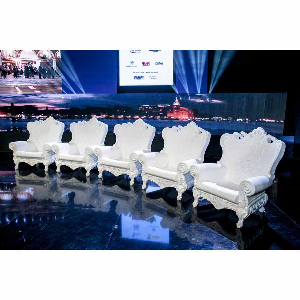 Queen Of Love är en fåtölj som lämpar sig för både inomhus- och utomhusmiljöer. Ett komplement med en unik tillverkad i Italien design som omedelbart kan väcka uppmärksamhet tack vare sin majestät och kröna alla som sitter på den. Perfekt som en chic touch för kvällar och evenemang eller som en inramning för speciella tillfällen.