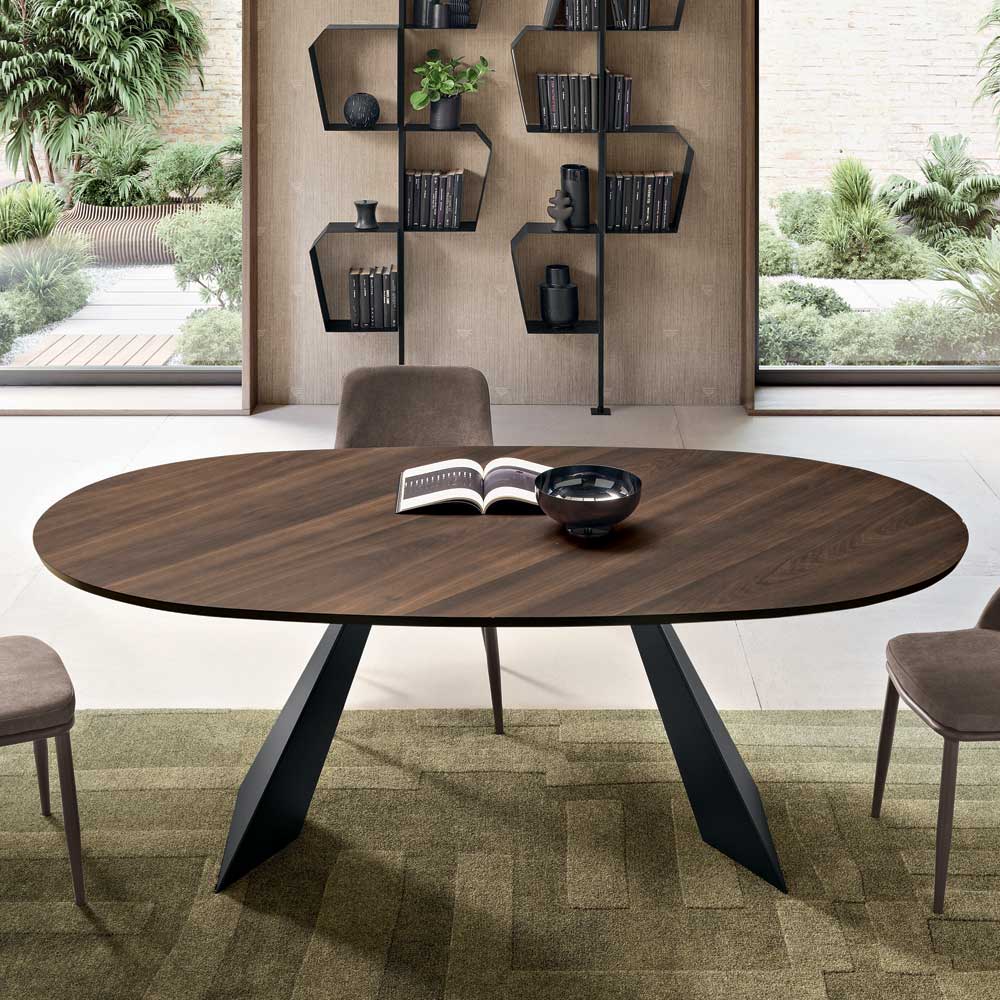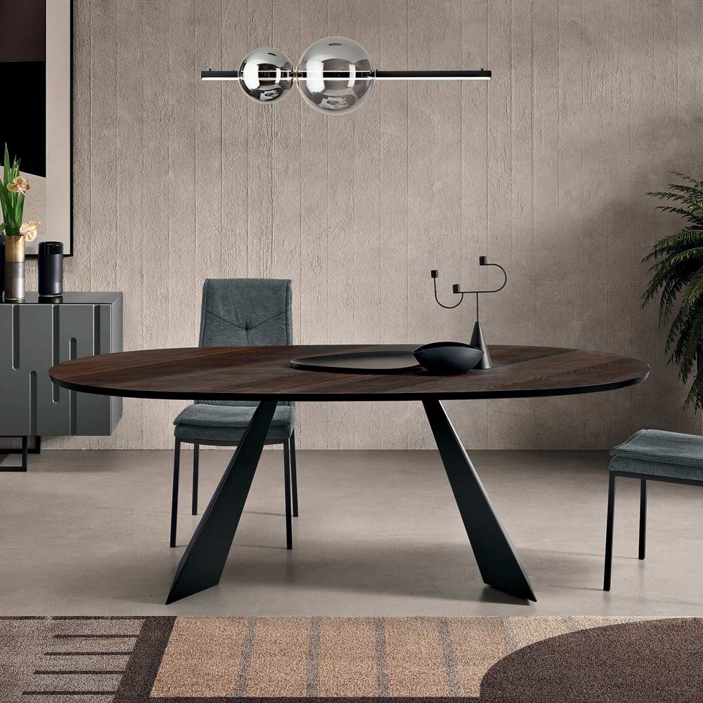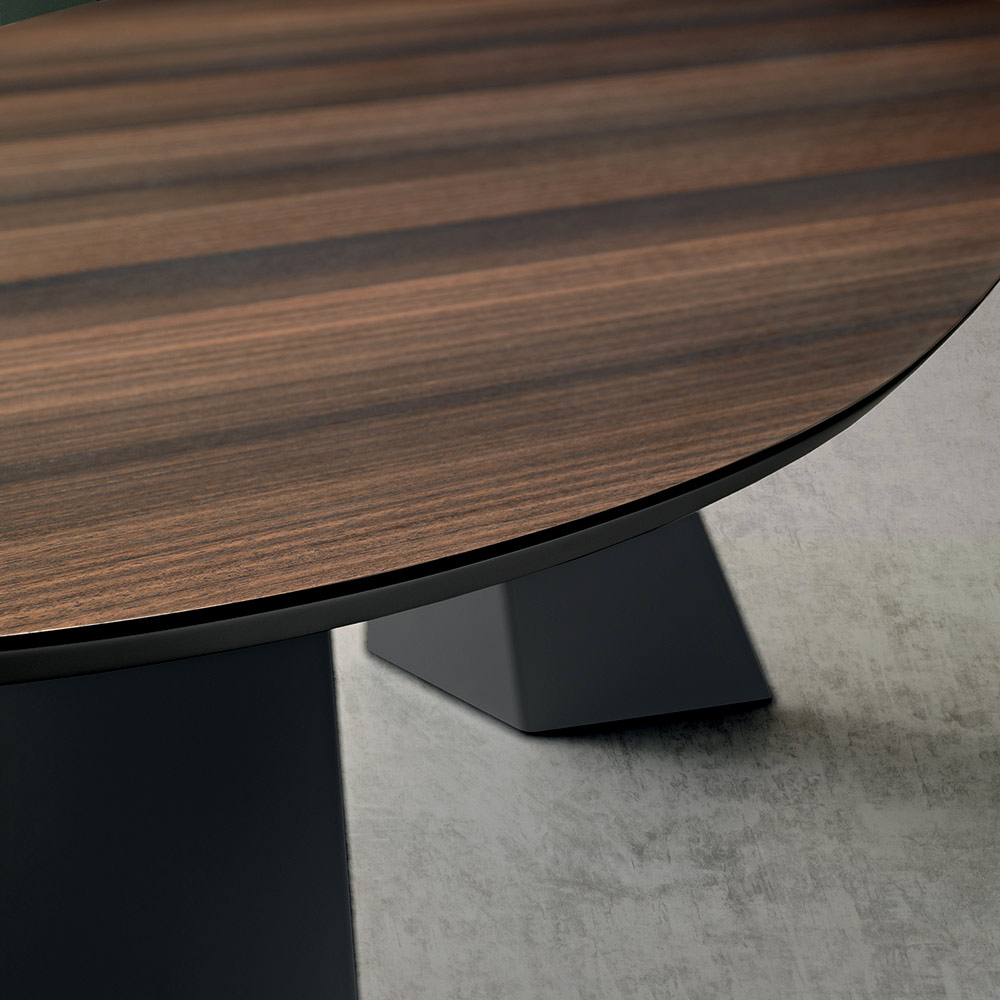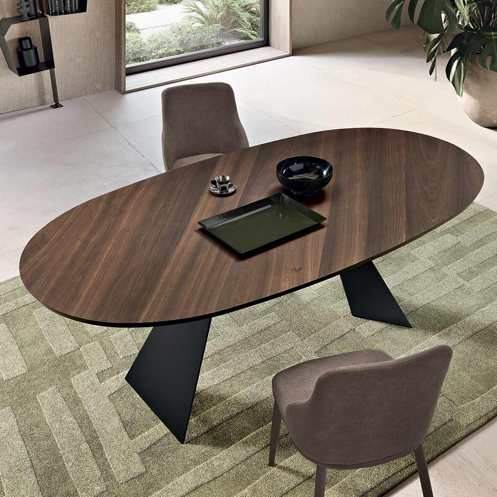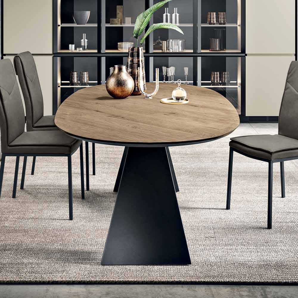 Ett elegant matbord i italiensk design, designat för att elegant inreda din matsal eller vardagsrumsdel . Bordet omtolkar den grundläggande designen hos Gilmour-modellen med en raffinerad oval skiva i ekfaner , ett val som ger mjukhet åt linjerna och uppmuntrar till trevlighet utan vassa kanter.