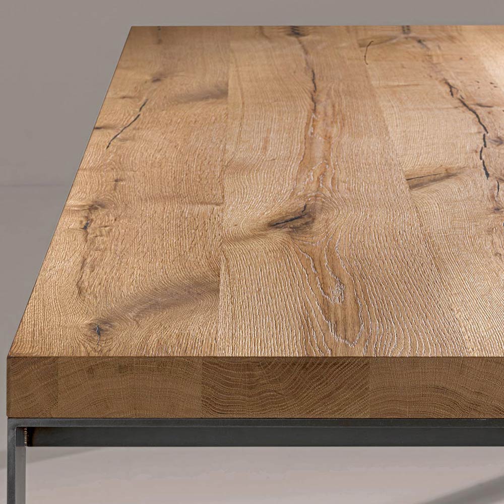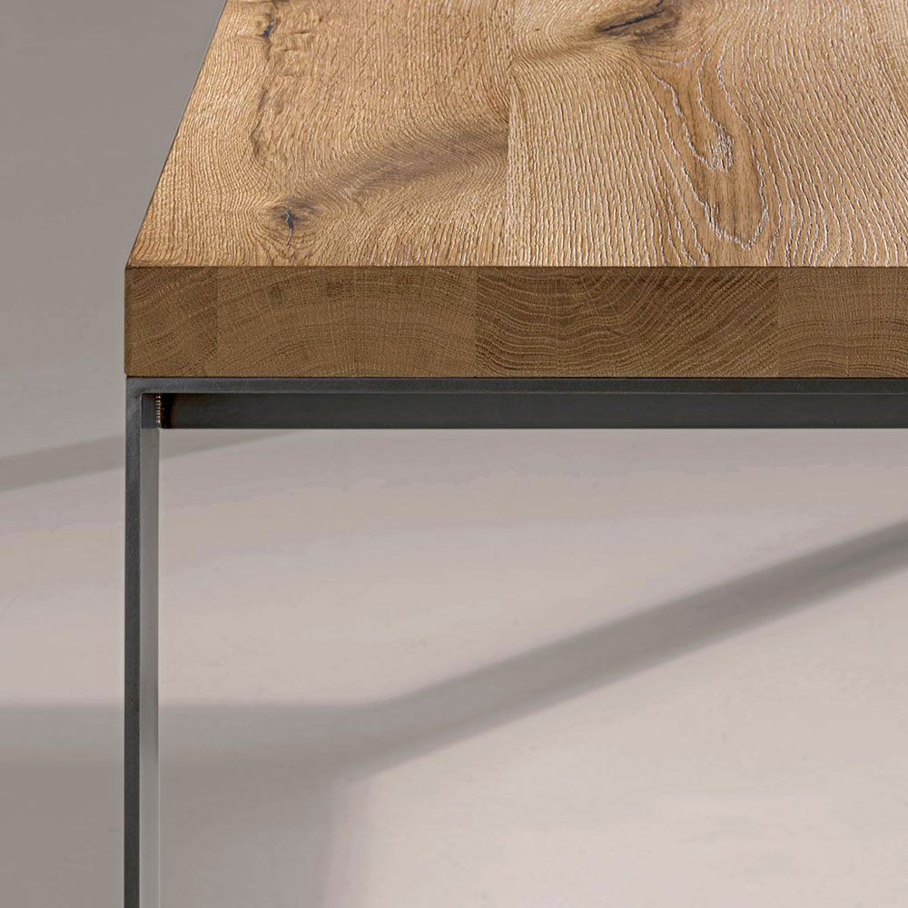 Fast bord med metallben och skiva i naturlig ek Made in Italy.