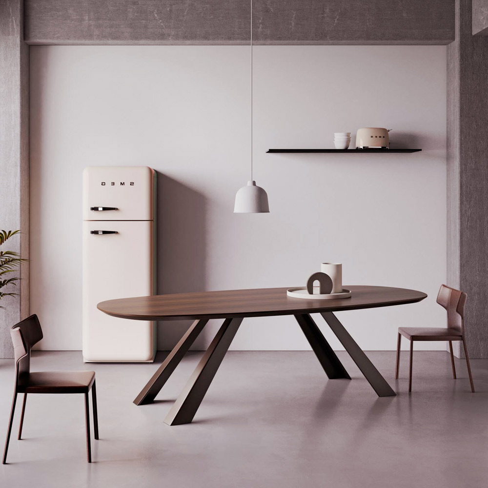 Fast bord med elliptisk skiva och fasad kant Made in Italy.