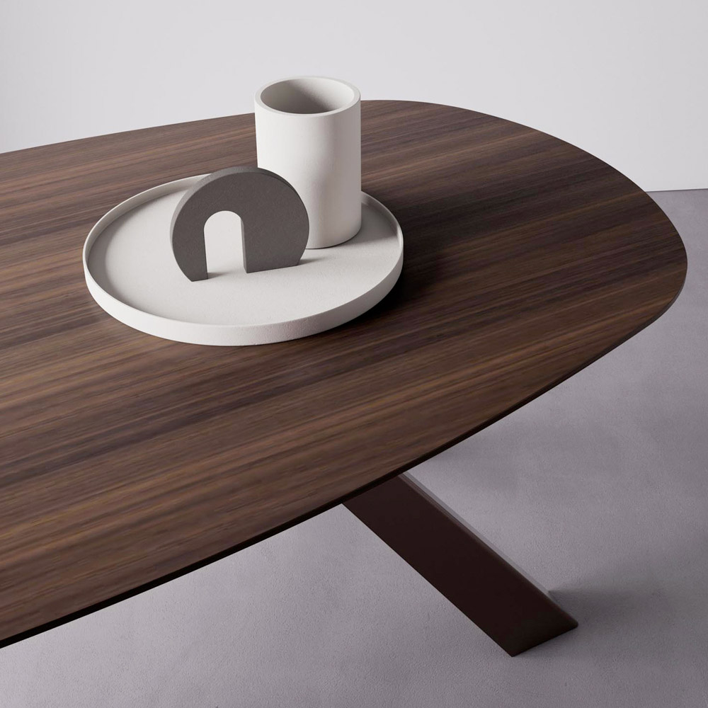 Bordet är format av futuristiska former, som ger ljus åt essensen och ger det distinkta linjer och perspektiv. Materialens robusthet översätts till en kreativ impuls som skapats av skickliga italienska händer, som når nya kvalitativa och estetiska mål. Möbler blir ett sätt att uppnå det perfekta personliga utrymmet.