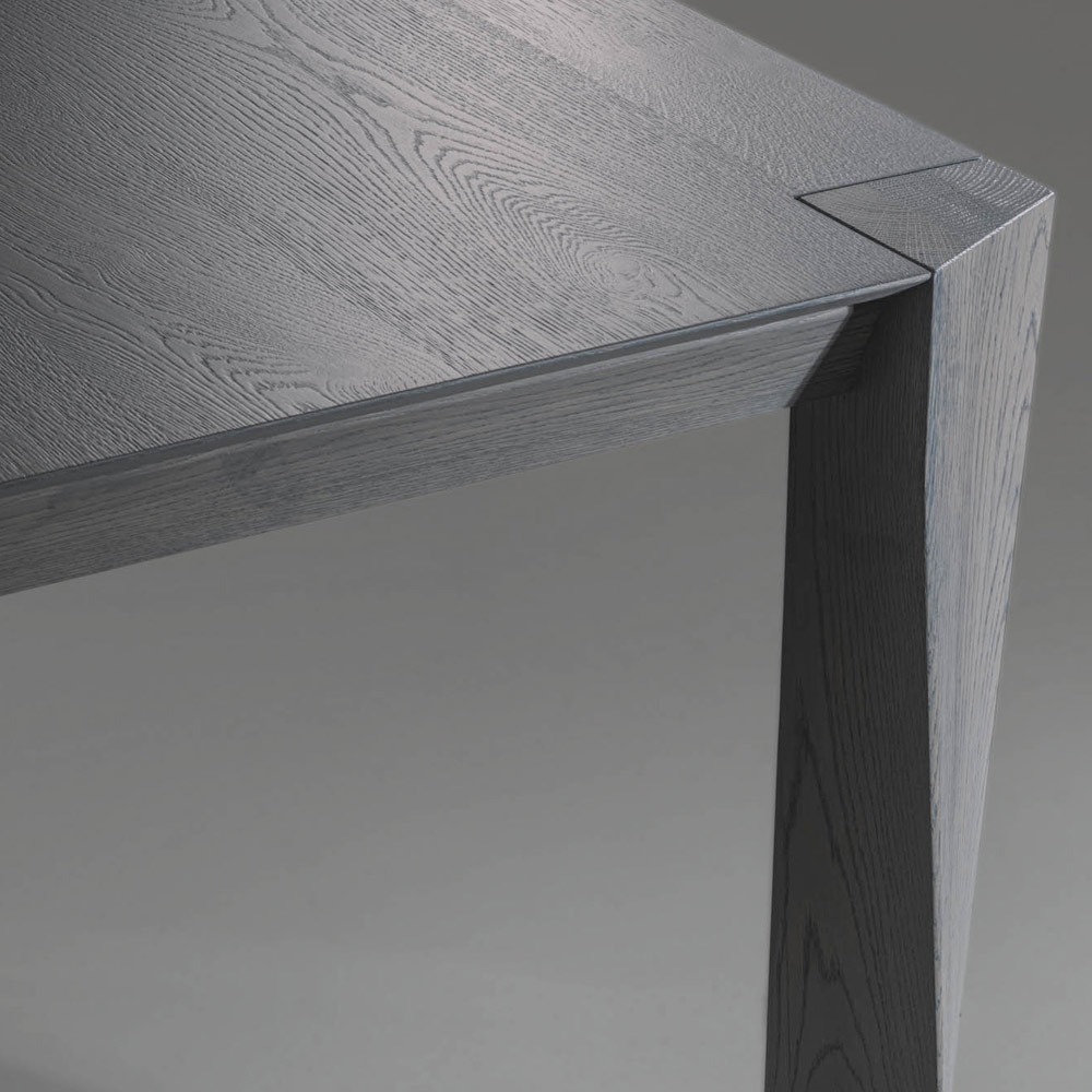 Bordet är format av futuristiska former, som ger ljus åt essensen och ger det distinkta linjer och perspektiv. Materialens robusthet översätts till en kreativ impuls skapad av skickliga italienska händer, som når nya kvalitativa och estetiska mål. Möbler blir ett sätt att uppnå det perfekta personliga utrymmet.