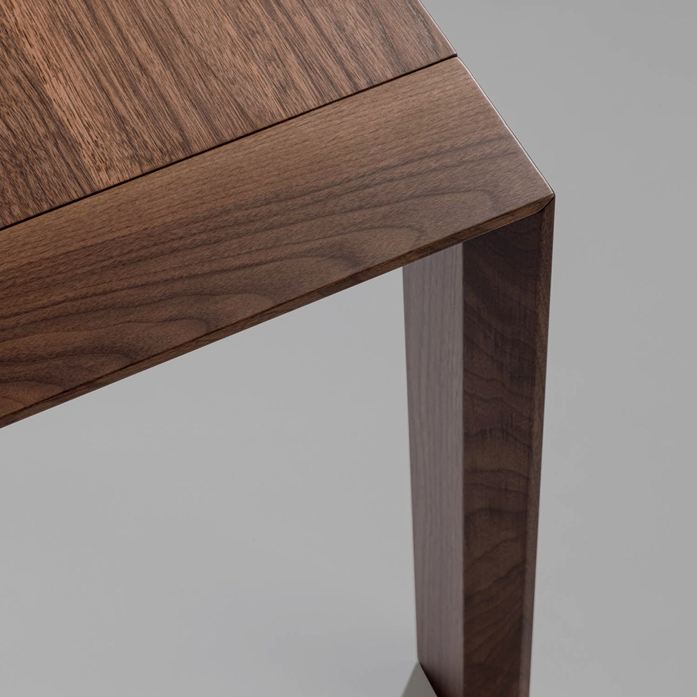Bordet är format av futuristiska former, som ger ljus åt essensen och ger det distinkta linjer och perspektiv. Materialens robusthet översätts till en kreativ impuls skapad av skickliga italienska händer, som når nya kvalitativa och estetiska mål. Möbler blir ett sätt att uppnå det perfekta personliga utrymmet.