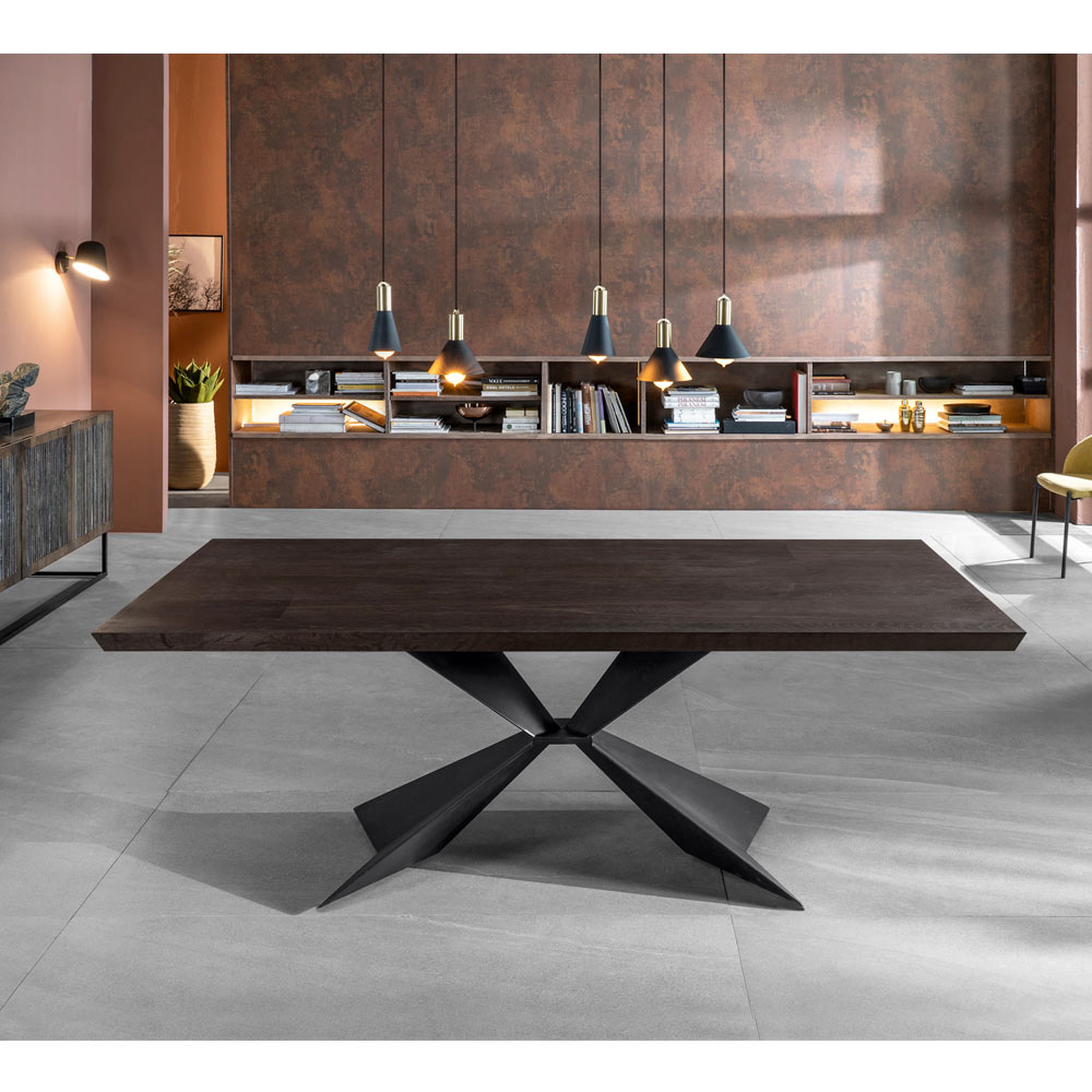 Detta bord, tack vare formen på dess ben, ger rummet en modern och elegant touch som perfekt matchar den klassiska referensen av trä och på så sätt tillfredsställer de olika behoven av stil och design. Det är ett bord som blir huvudpersonen i vardagsrummet, oavsett om det är kök eller vardagsrum, vilket ger kunden unika och oförglömliga stunder av gemytlighet.