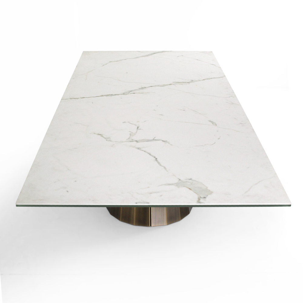 utmärkt kvalitet Made in Italy. Toppfinish:- polerad ådrad guld calacatta (tjocklek 10 mm glas + 5 mm keramik)