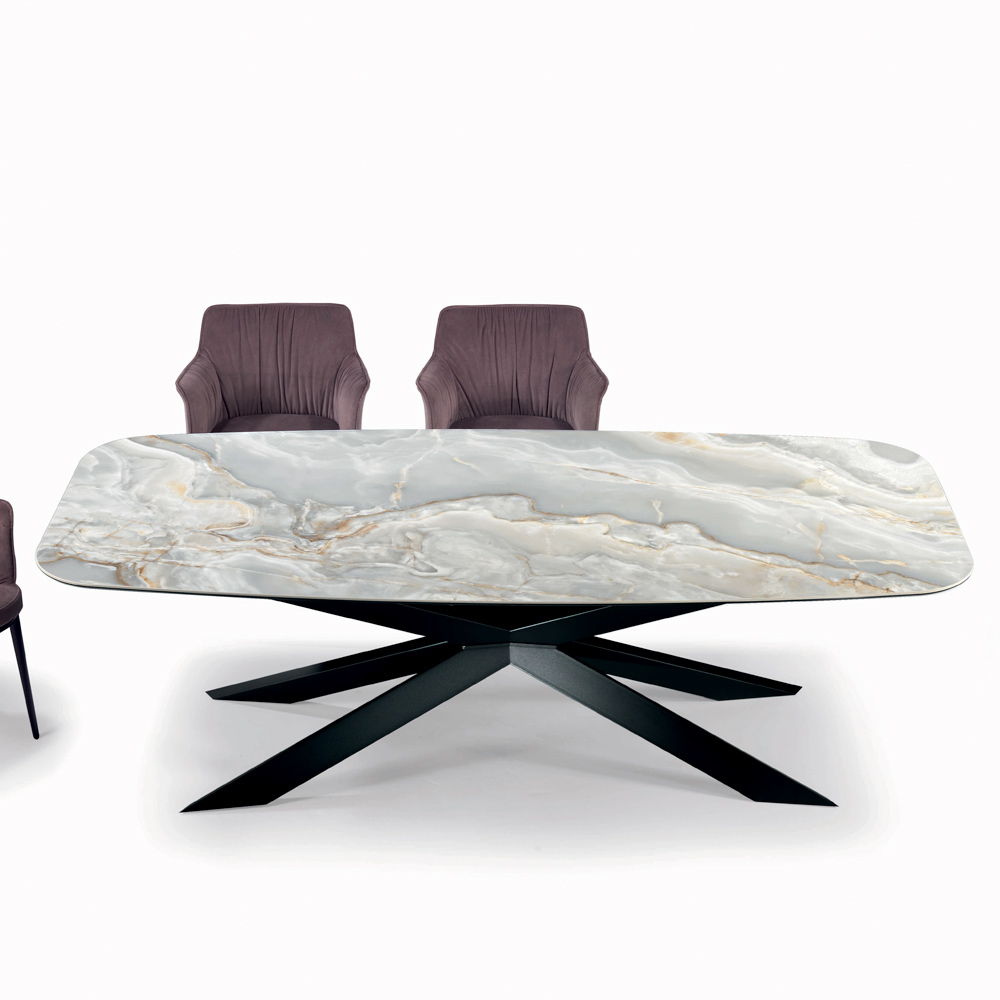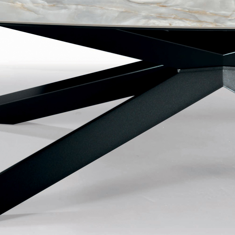 Fast tunnformat vardagsrumsbord med keramikskiva,45° fasad kant, svartlackerad stålfot med justerbara fötter. All behärskning och kvalitet hos italienska hantverkare finns i denna produkt, där de bästa materialen har valts och maximal uppmärksamhet har ägnats åt varje enskild detalj . Vi ville kombinera modern stil med funktionalitet för att skapa ett bord som inte bara är vackert att se på utan även kan användas vid olika tillfällen.
