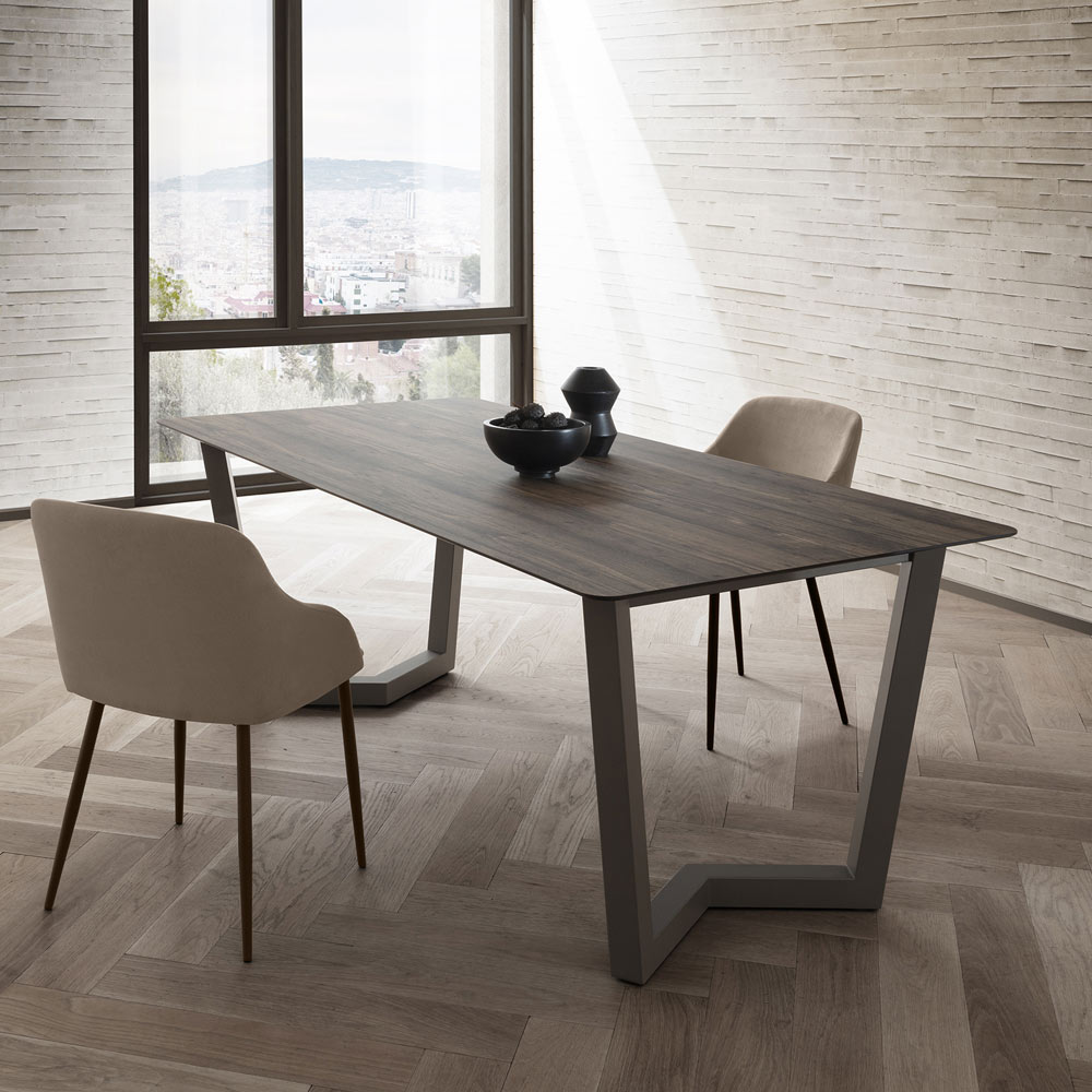 Matbord med metallben och HPL-skiva i lager Made in Italy.