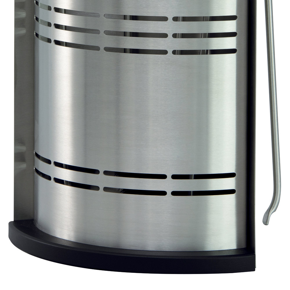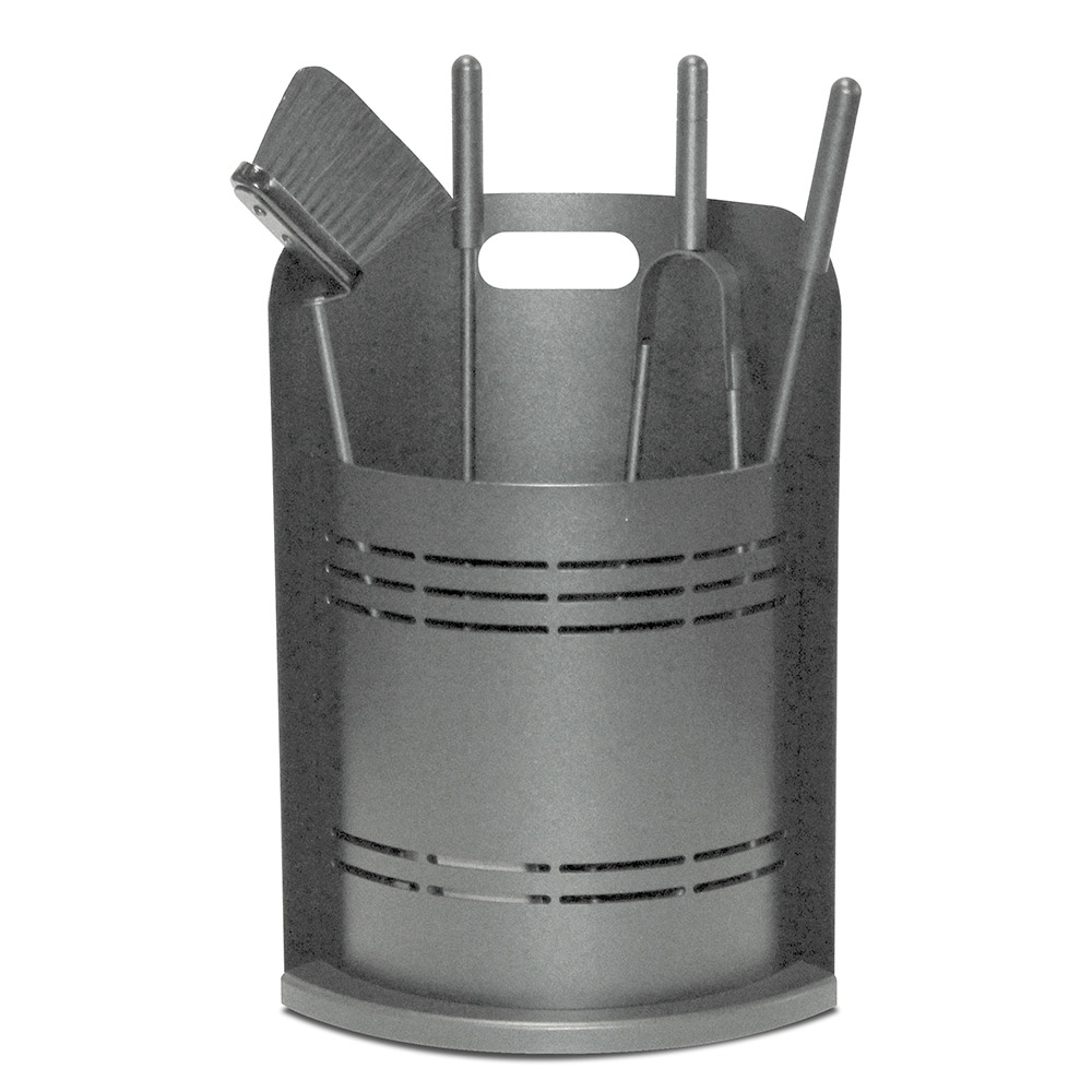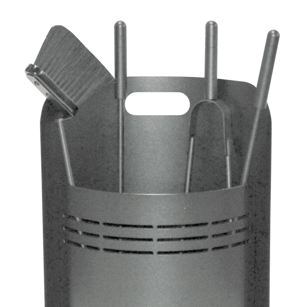 Denna eldstadsverktygshållare är idealisk för dem som letar efter en touch av modern design . Dess cylindriska form är elegant och utrymmesbesparande, medan de horisontella spåren inte bara skapar en iögonfallande visuell detalj utan också säkerställer tillräcklig ventilation för utrustningen.