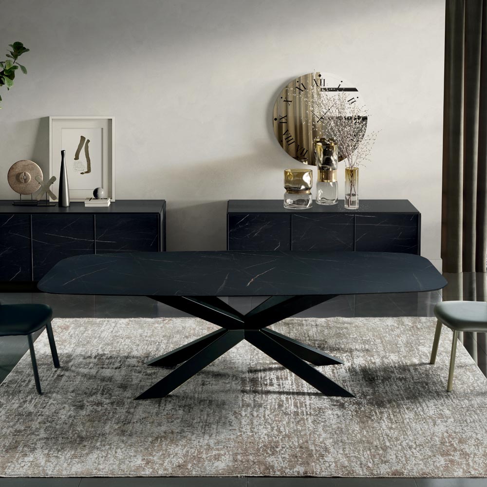 Fatformat matbord i HPL-laminat och svart stål Tillverkat i Italien.