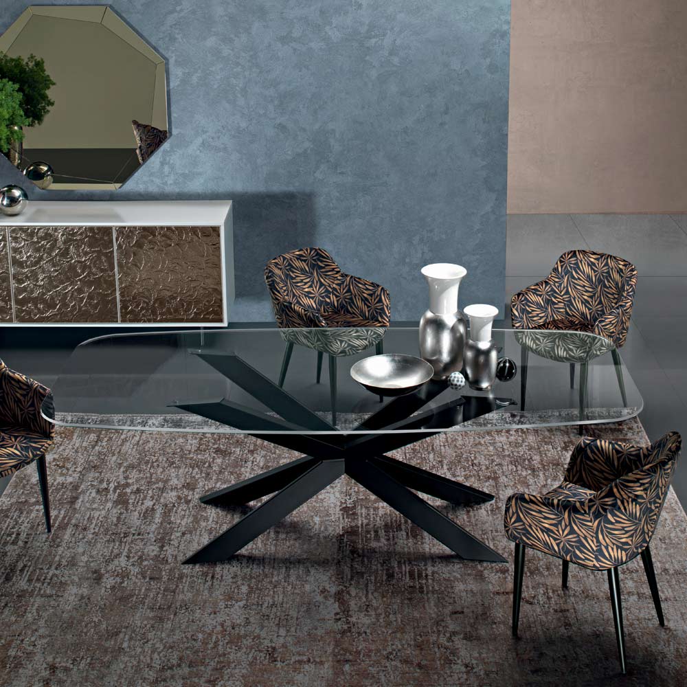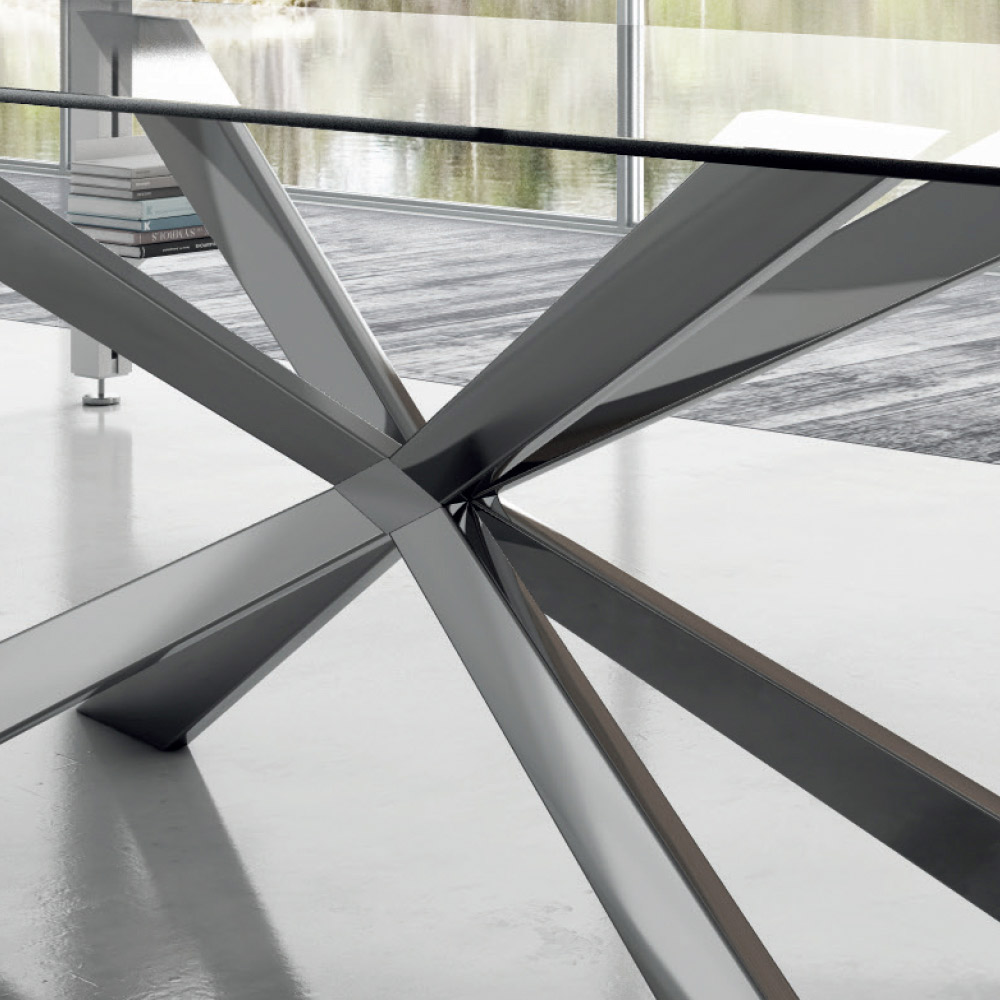 Matbord med skiva i glasfat och stålunderrede Made in Italy.