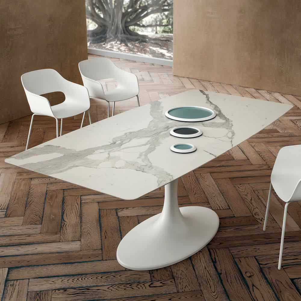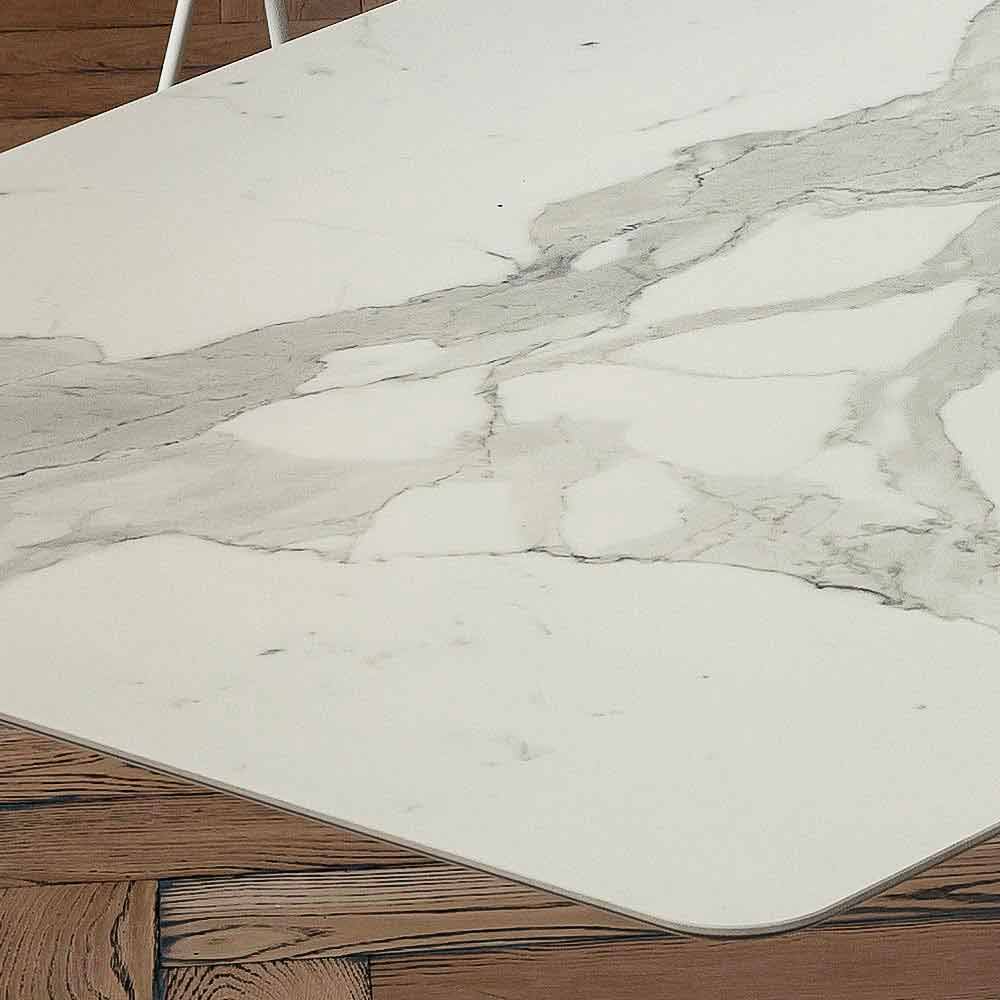 Köksbord med skiva i laminam och Made in Italy marmorfot, hög kvalitet.