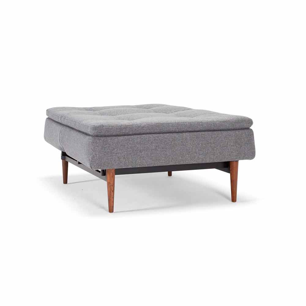 Skandinavisk design Dublexo fåtöljsäng justerbar i 3 positioner av Innovation, nordisk stil med mörka träfötter, matt svart stålkonstruktion.