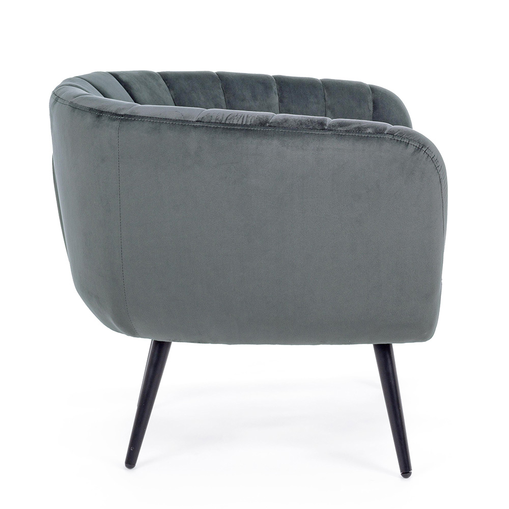 Fåtölj i stål och grå eller blå sammet skandinavisk design - Hilary