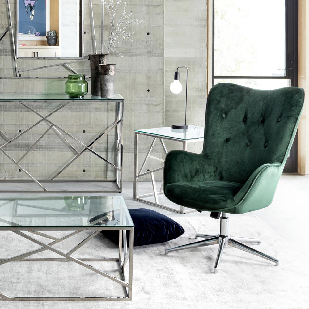 Fåtölj med justerbar struktur i kromat stål och sammet - Giulia