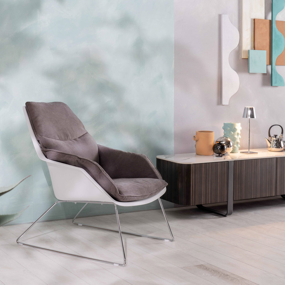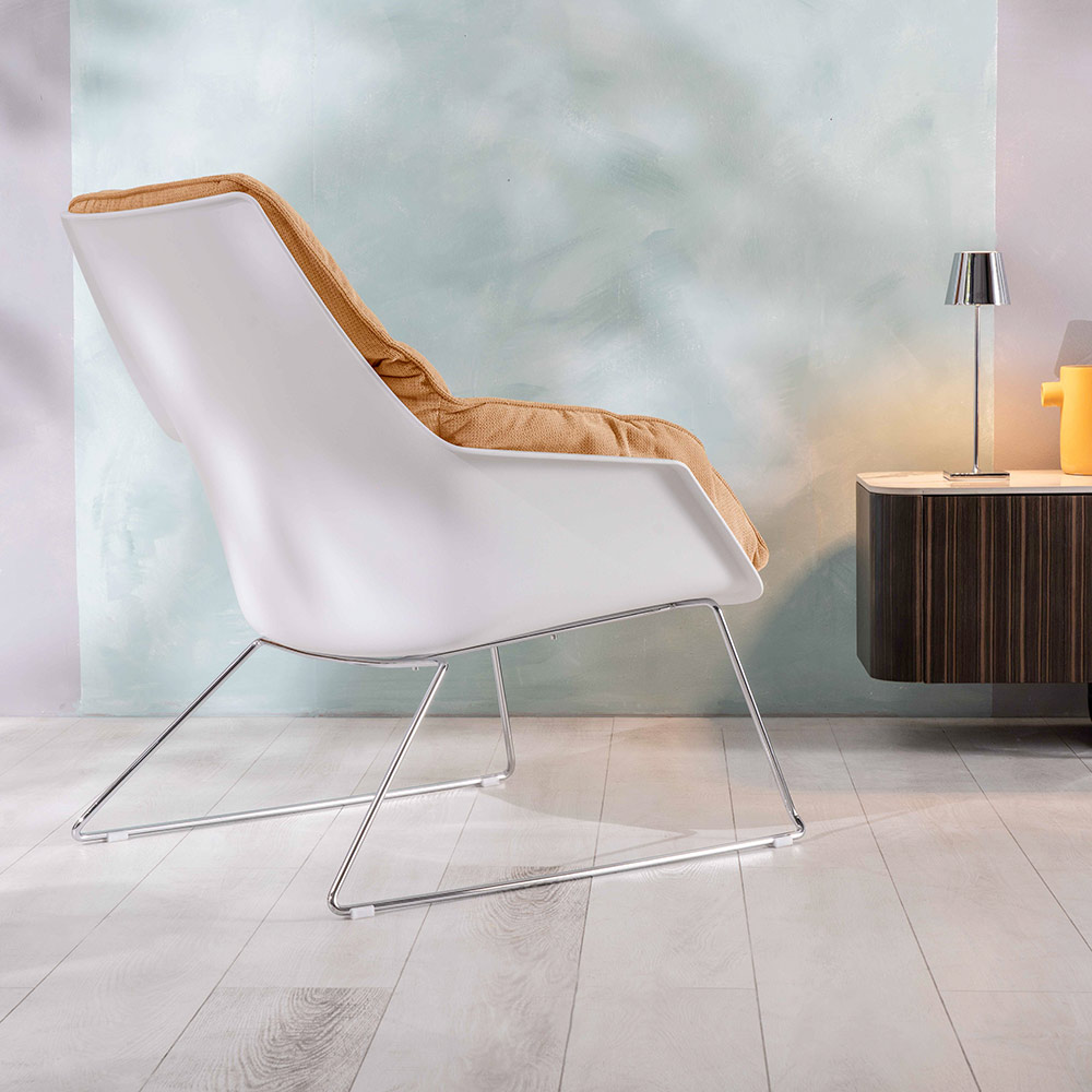 Designad för att rymma kroppen i total komfort och avkoppling tack vare den generösa vadderingen, är detta fåtöljen som inbjuder dig att sitta och uppleva dess komfort. Strukturen gjord av polypropen med en metallbas kompletteras med en avtagbar och tvättbar sits. Rolig och modern, den är idealisk för informella miljöer och kontraktsmiljöer.