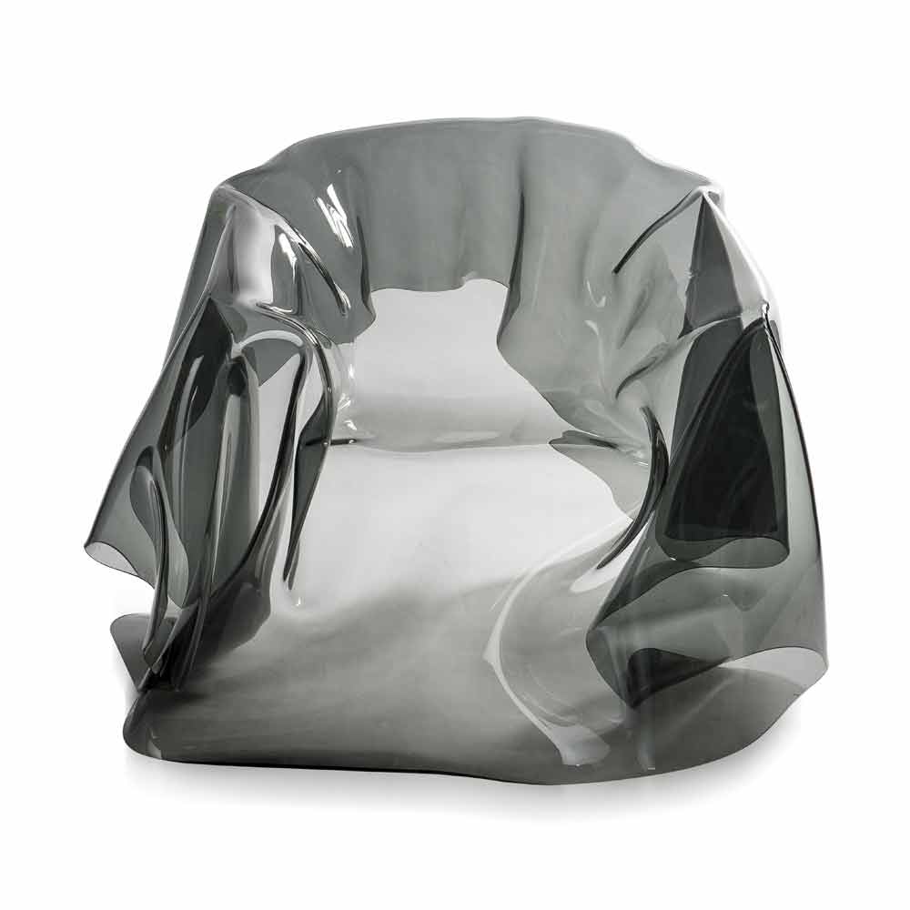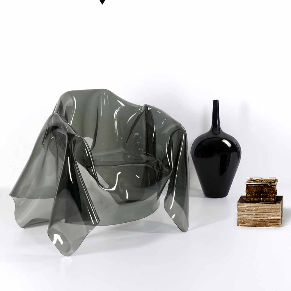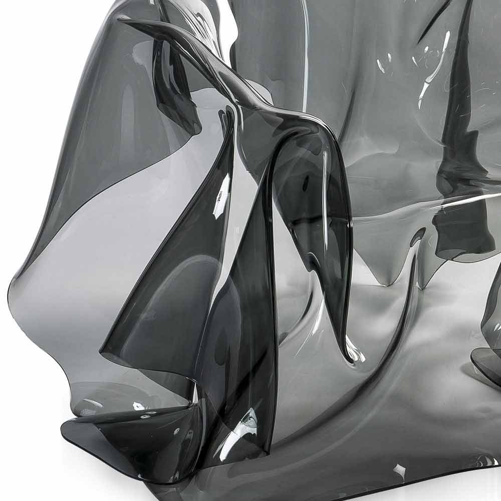 Paris draperade stolen är en unik pjäs, ett verk av modern konst. Från ett ark av ren jungfru polymer 100% PMMA plexiglas från rökiga färgning draperad helt för hand, är det föds en unik och unrepeatable stol. Stolen är helt självförsörjande och rymmer en person. De fysikaliska och tekniska egenskaper plexiglas (chock, stress-resistent, hållbara, värmeisolerande) gör denna artikel ett komplement av praktiska och funktionella möbler, lämplig för alla miljöer. Ljusstyrkan och ljusstyrkan förblir konstant och oförändrade över tiden. Den plexiglas PMMA från jungfrulig polymer används av icke-toxiska, hypoallergena, luktfri och antibakteriellt. Återvinningsbar 100%. Utformade, konstruerade och tillverkade i Italien, med italienska material.