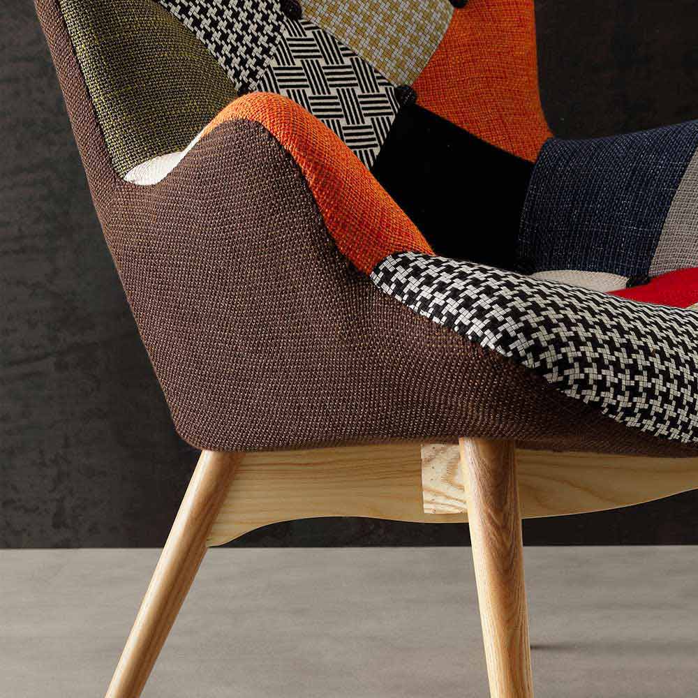 Fåtölj multicolor patchwork med fast trä ben Veronica