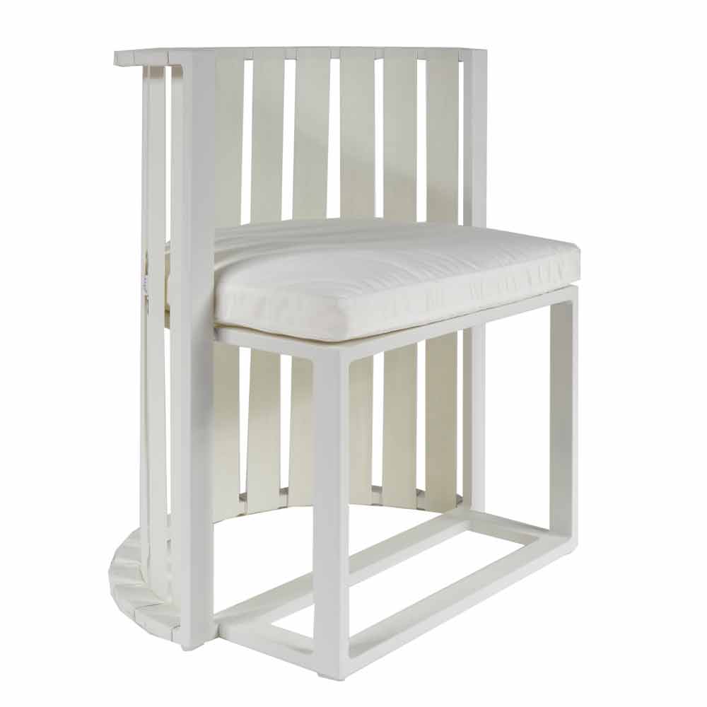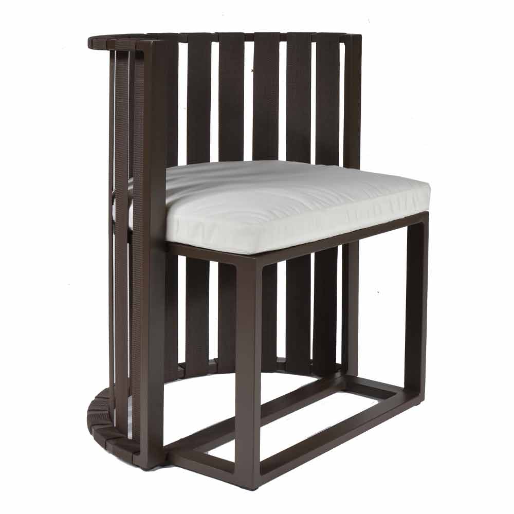 utomhusfåtölj kännetecknas av alterneringen av tomma och fulla utrymmen som skapar ett ljust och modernt visuellt utseende.