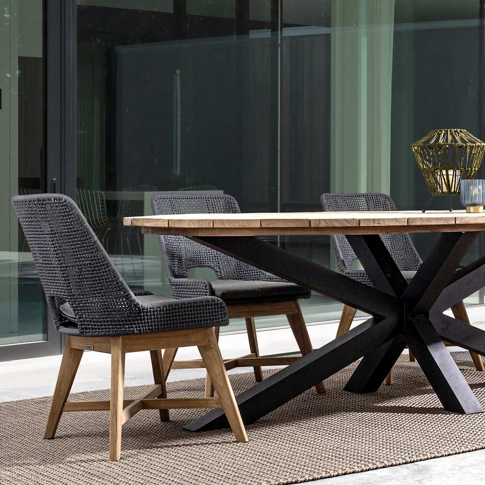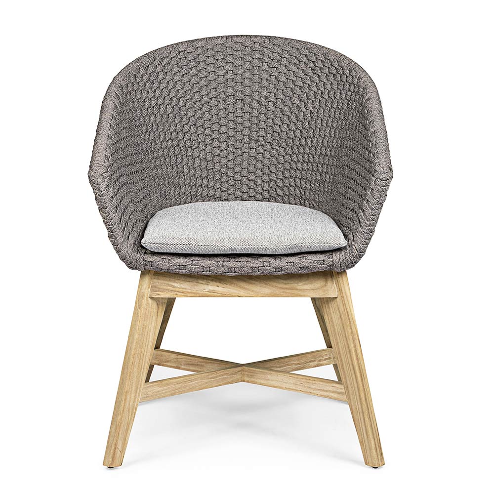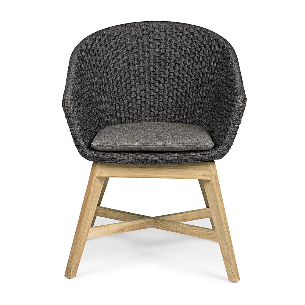 Fåtölj utomhus i teak med rep och tygstol, 2 kvalitetsstycken.