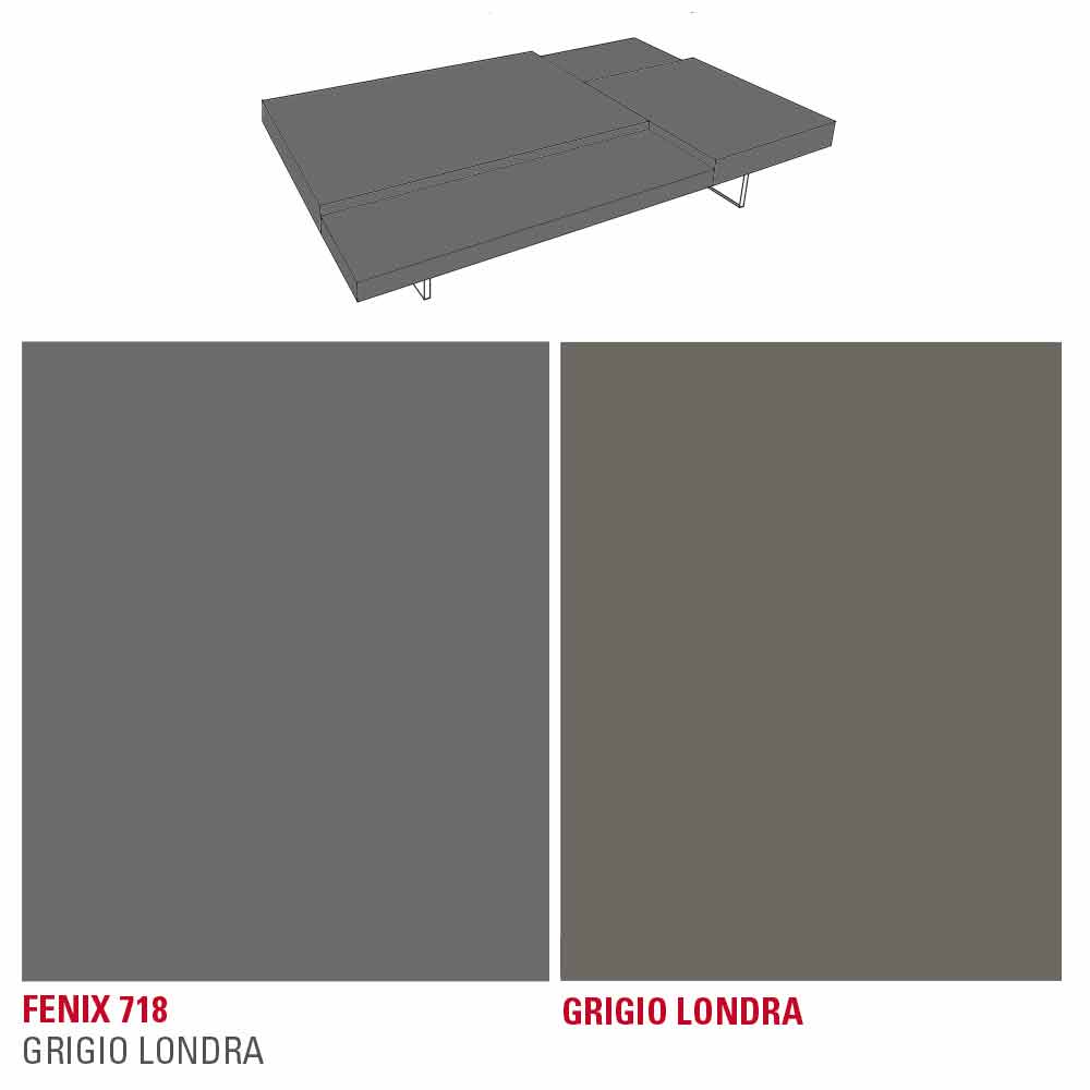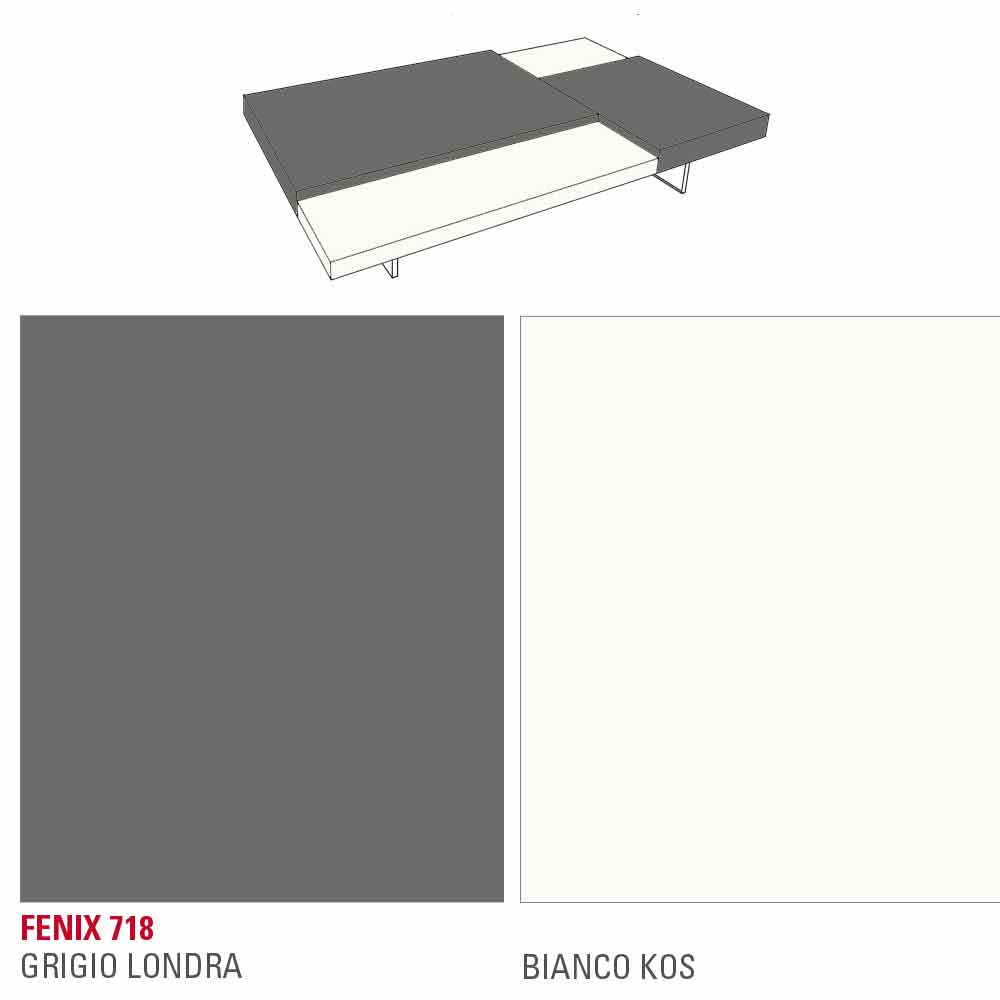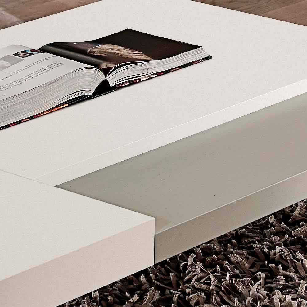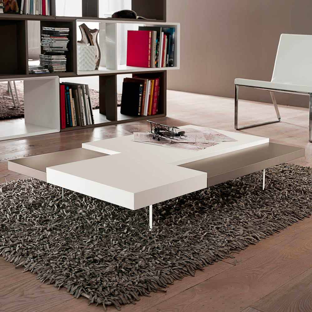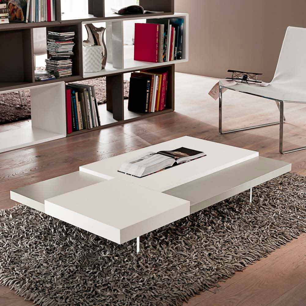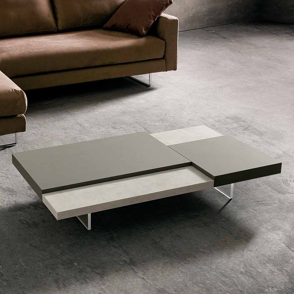 genomskinliga polymetylmetakrylatfötter . I alla vardagsrum är närvaron av ett soffbord väsentligt som, förutom att representera en praktisk och funktionell stödyta, ger harmoni till möblerna och fullbordar dess estetik tack vare fängslande och originella linjer och former. Denna möbel förkroppsligar alla de grundläggande egenskaperna hos ett perfekt soffbord, vilket visar sig vara en utmärkt idé för dem som älskar att dekorera sina utrymmen med element med en enkel men slagkraftig stil. Den speciella formen på topparna placerade på olika höjder spelar en viktig roll i designen av produkten eftersom den erbjuder ett exklusivt kontrastspel. Dessutom leder