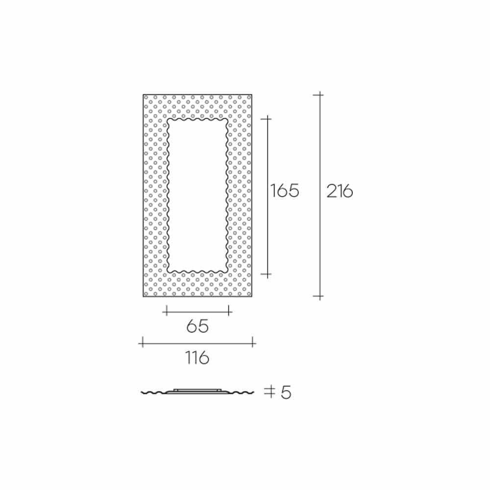 Golv- eller väggspegel med 6 mm hög-låga smält glas baksilverad ram; 5 mm platt spegel. Baksida i målad metall. Möjlighet till vertikal eller horisontell hängning. Levereras med avtagbara fötter för golvversion. Pop- spegeln, tack vare sin raffinerade men mångsidiga design, kommer att bli huvudpersonen i den miljö där du väljer att installera den, vare sig det är vardagsrummet, sovrummet eller kontoret.