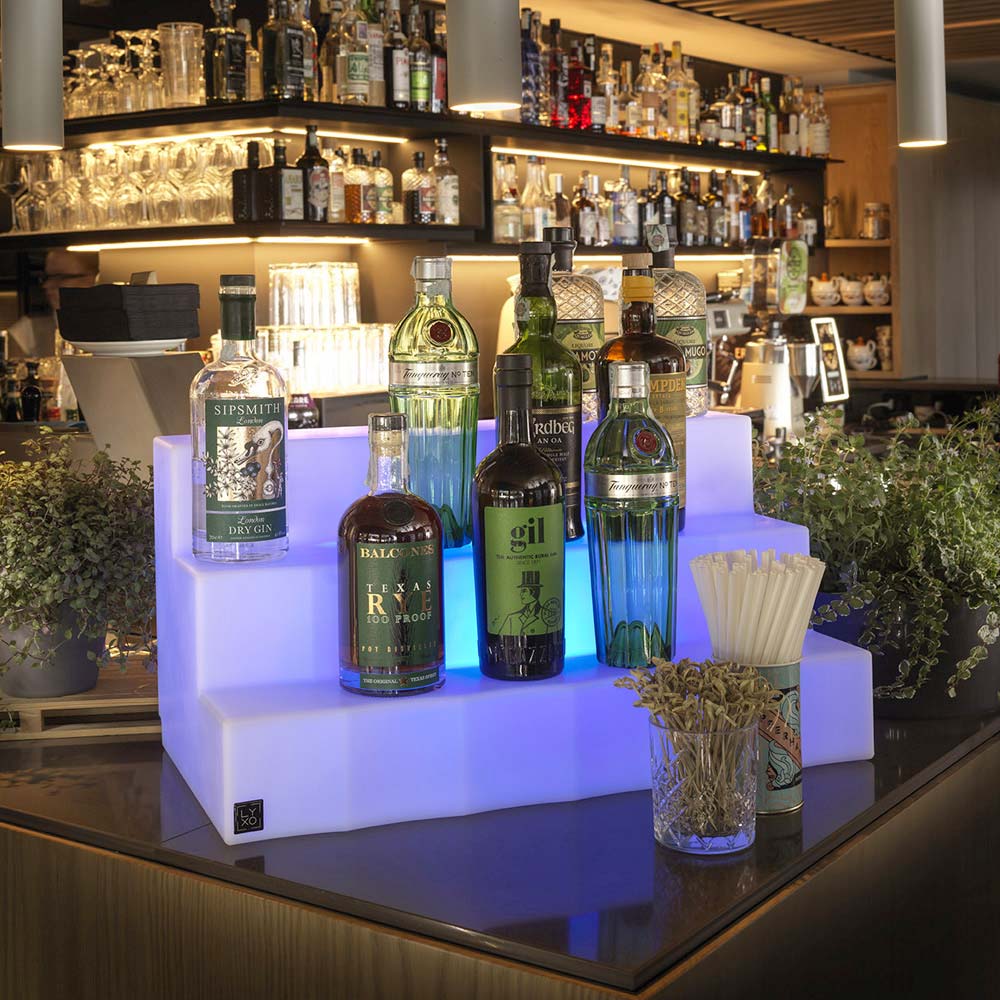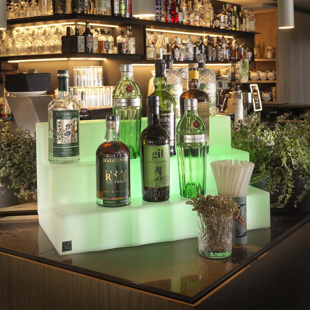 polyeten som består av tre stora trappsteg som låter dig rymma olika typer av flaskor för att göra baren elegant och modern med en touch av klassisk