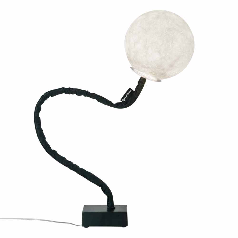 Strukturen på den moderna Micro Luna golvlampan är flexibel och justerbar och är gjord av gjutjärn och stål, medan den ljusa sfären är gjord av Nebulite® , ett innovativt material som består av harts och fiber, vars vener ger lampan en speciell effekt " månen ".