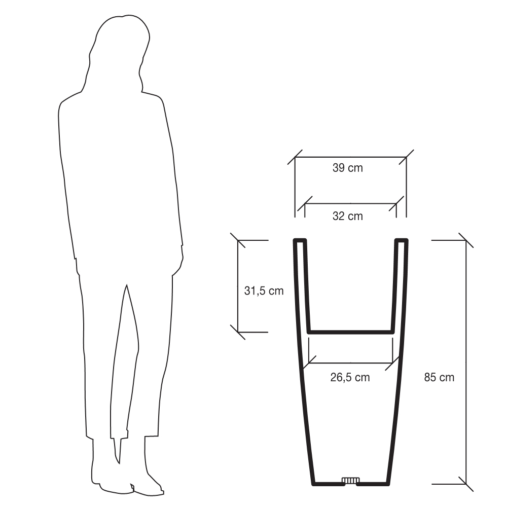 Hög vas med fyrkantig form, elegant och stilfull som passar alla trädgårdar. Tillverkad av polyeten, är den