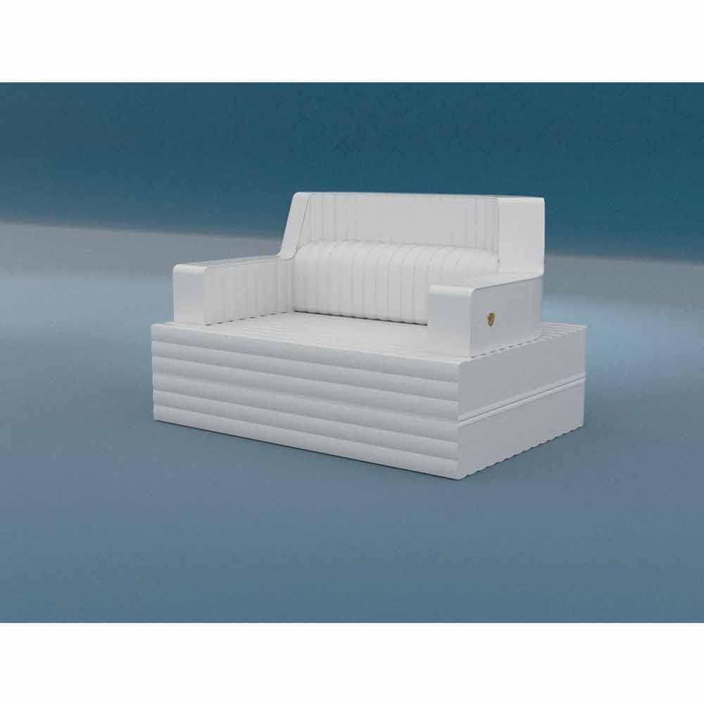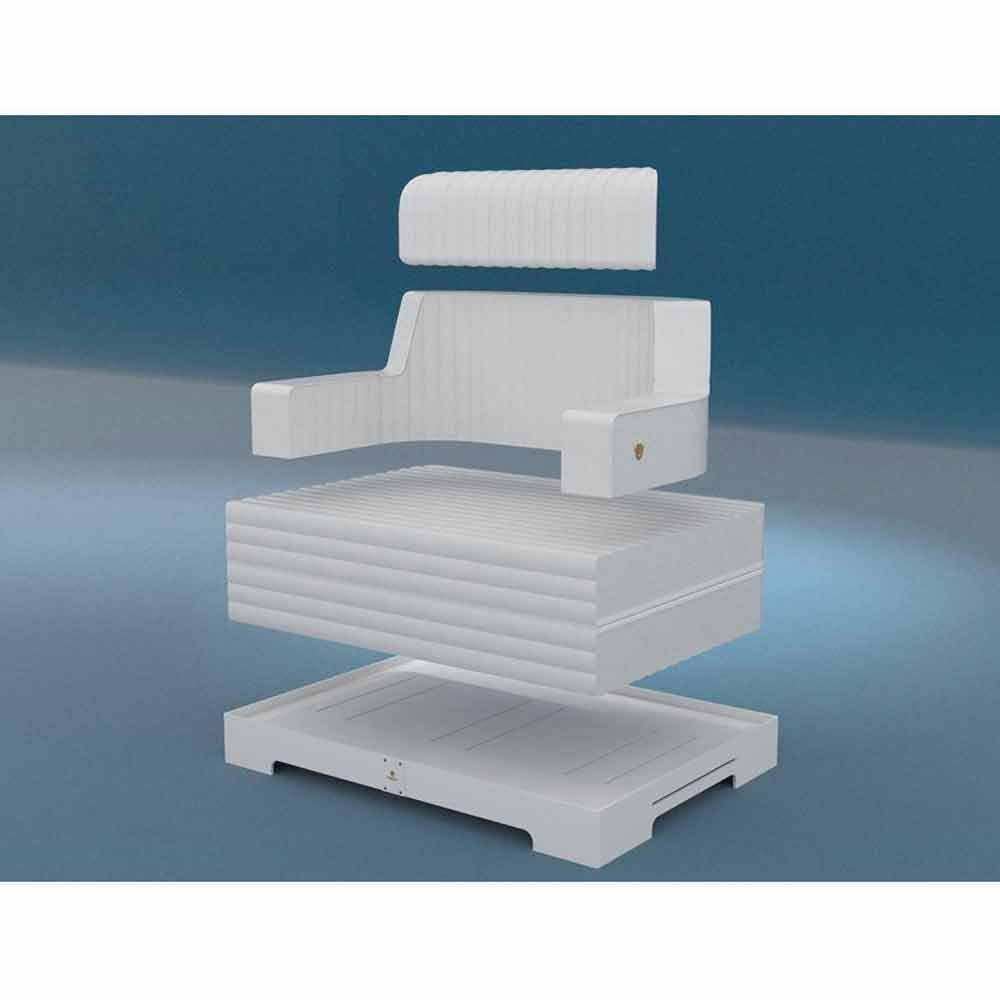 Trona Magnum görs i Ecopelle miljövänligt Båtliv behandlas för utanför i vit finish, certifierad, vattenavvisande och flamskyddade och EPS, komplett med en dubbelsätes, ryggstöd, ryggstöd och bas.