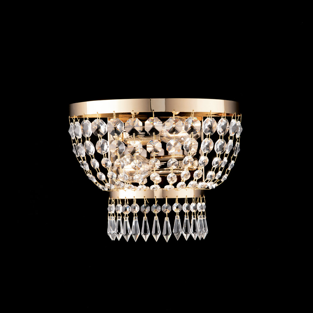 Denna vägglampa finns i den varma och sofistikerade finishen polerad guld eller den moderna och ljusa polerade kromen , och representerar den italienska hantverkets excellens, där kvalitetsmaterial och noggrannhet i detaljer smälter samman till en tidlös design.