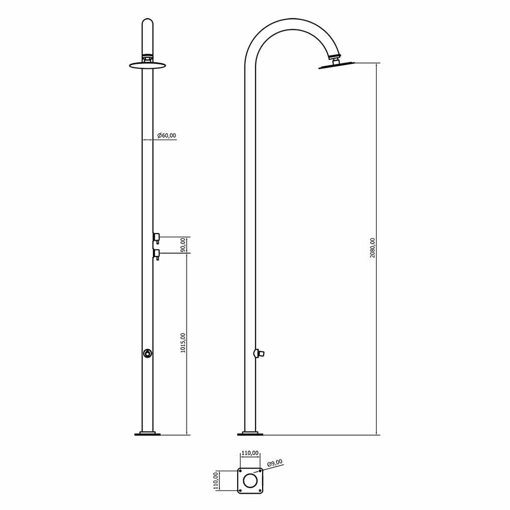 100 % italiensk hantverksproduktion och tack vare användningen av högkvalitativa råvaror säkerställs hög teknisk prestanda, vilket ger liv åt en produkt som är lika funktionell som den är elegant och stilren. Idealisk för områden som badorter och turistanläggningar men även privata miljöer som simbassänger och trädgårdar, representerar denna utomhusdusch en