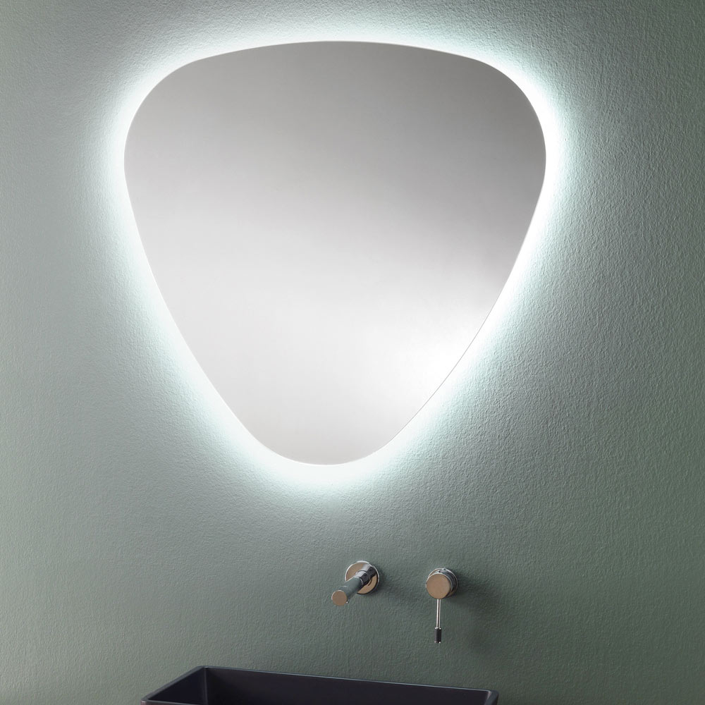 Polerad kantformad väggspegel med LED-bakgrundsbelysning, hög kvalitet tillverkad i Italien.