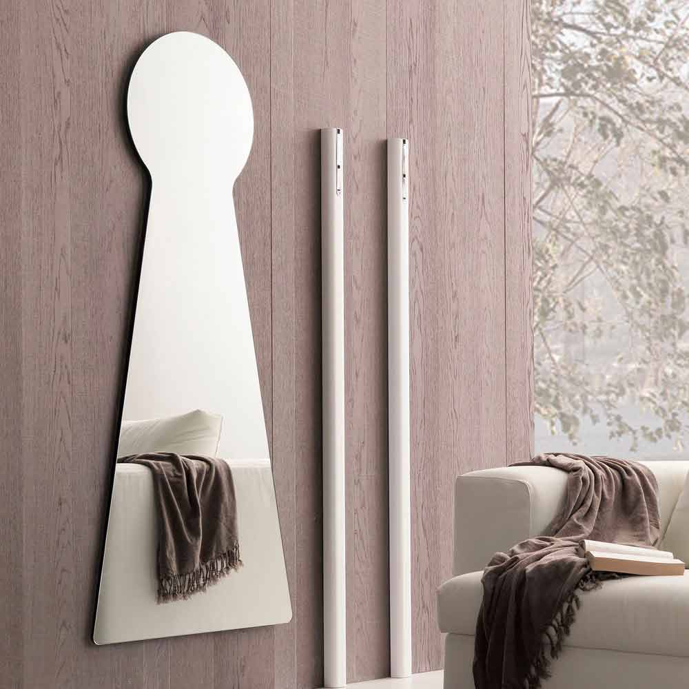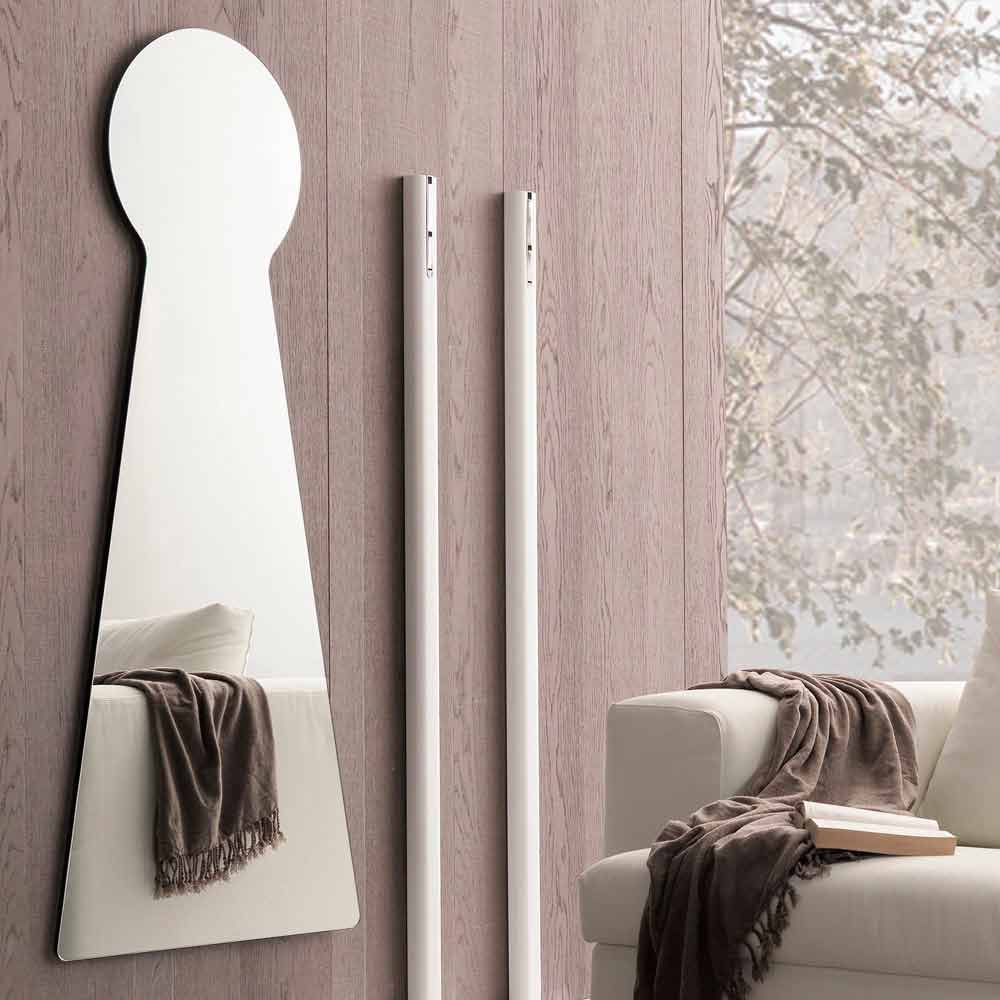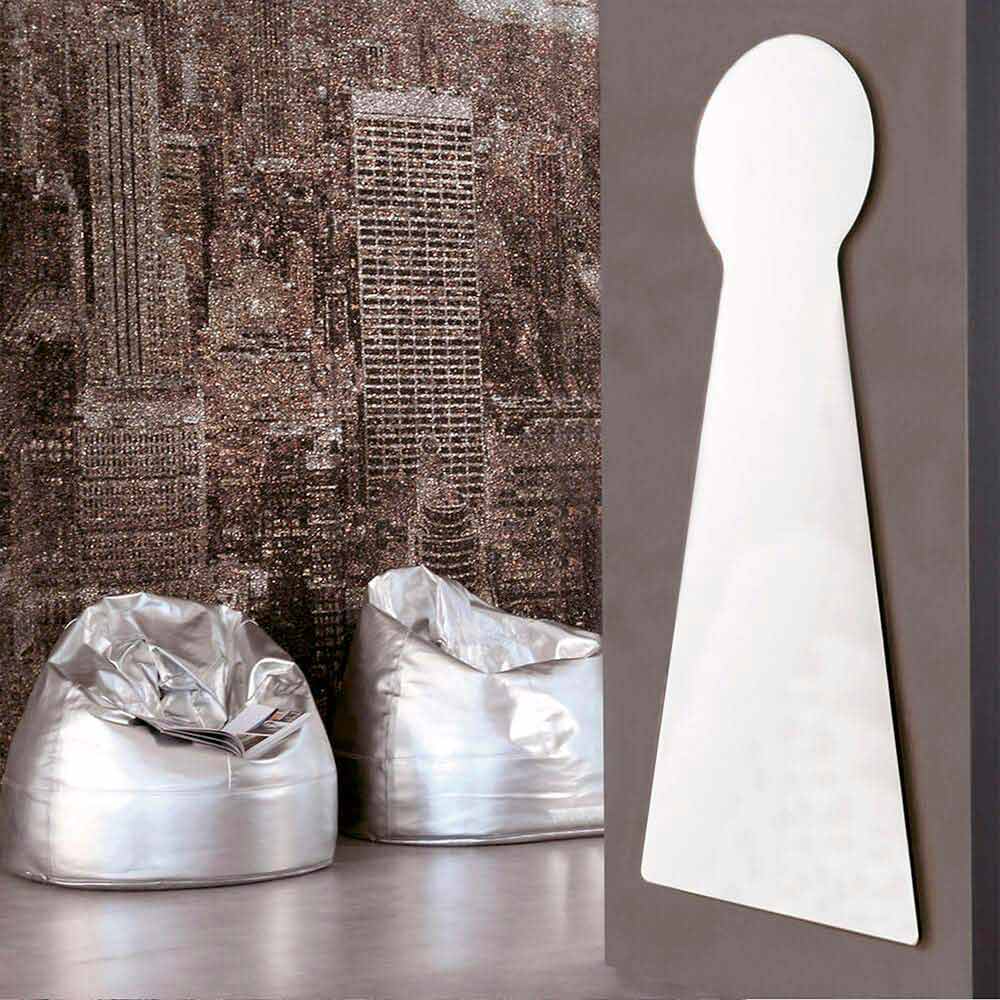 Originalformad väggspegel tillverkad i Italien med bakre spegelpanel i melamin . Denna möbel har en extremt kreativ och avantgardistisk design och anpassar sig felfritt till alla moderna möbleringssituationer inom vilka den lyckas karakterisera miljön, vilket gör den ljusare och rymligare. Dess imponerande dimensioner gör det till ett särskilt lämpligt val för stora rum med stora väggar som fylls med en touch av personlighet och unik stil. Spegeln representerar ett eklektiskt och särskilt mångsidigt tillbehör som kan omvandla och förbättra uppfattningen av vilken miljö som helst. Det representerar ett grundläggande element som lyckas optiskt förstora utrymmena samtidigt som det fungerar som en viktig ljuspunkt.
