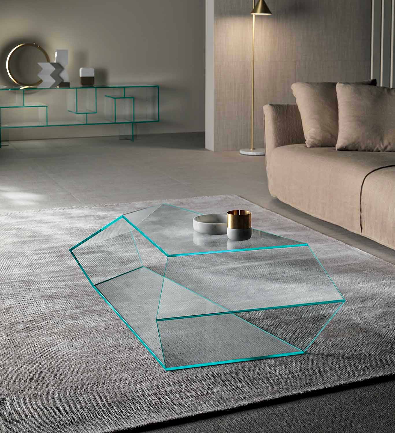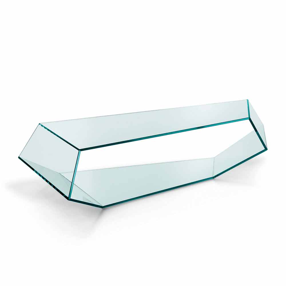Modern designformad soffbord i extra klart eller rökt glas, handgjord i Italien.