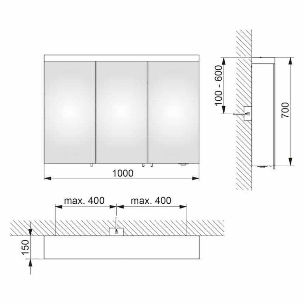 Denna typ av belysning avger en varmvit ljusstråle som kan skapa en bekväm och välkomnande atmosfär. Tillsammans med den främre som täcker spegelns övre del berikas denna artikel av den nedre belysningen som belyser kranarna. Det finns också en praktisk roterande dimmer placerad under skåpet som gör att du kan välja mellan de tre olika belysningslägena och att dämpa ljusintensiteten.