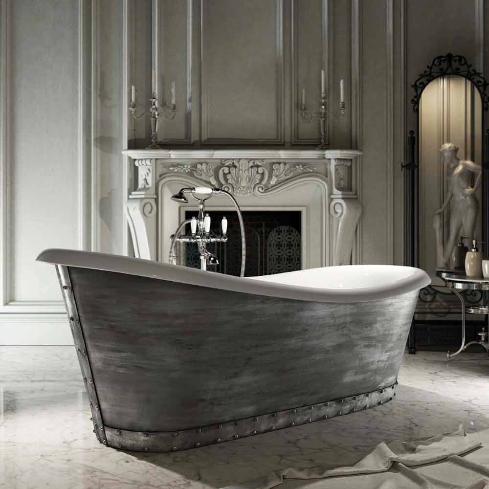 Furtei är det berömda badkaret tillverkat helt för hand (så att varje badkar kan vara annorlunda och betraktas som en unik bit) i förstärkt harts och med den smidda kroppen i antik aluminium.