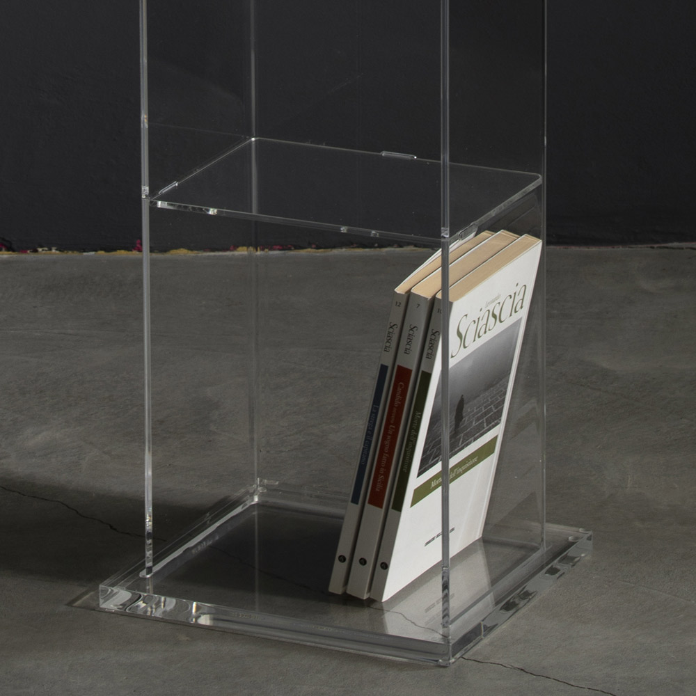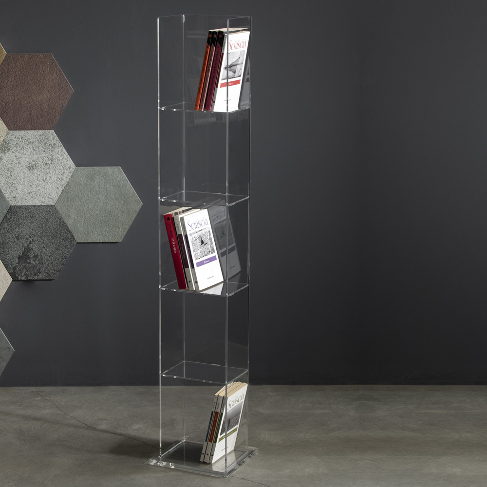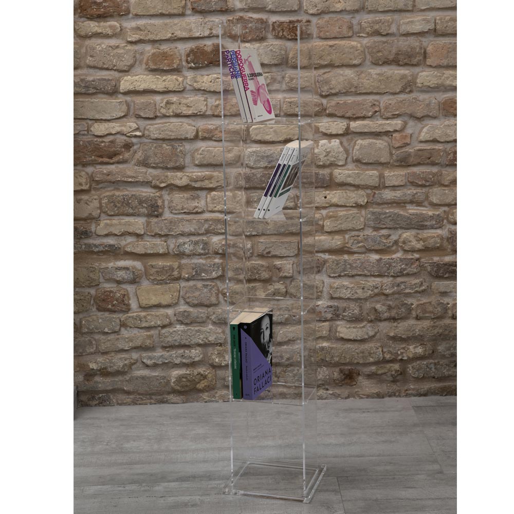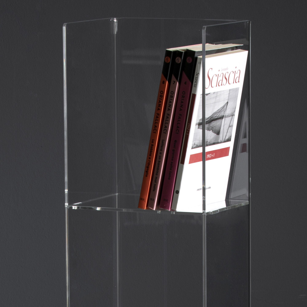 Fristående bokhylla i transparent akrylkristall, design tillverkad i Italien.