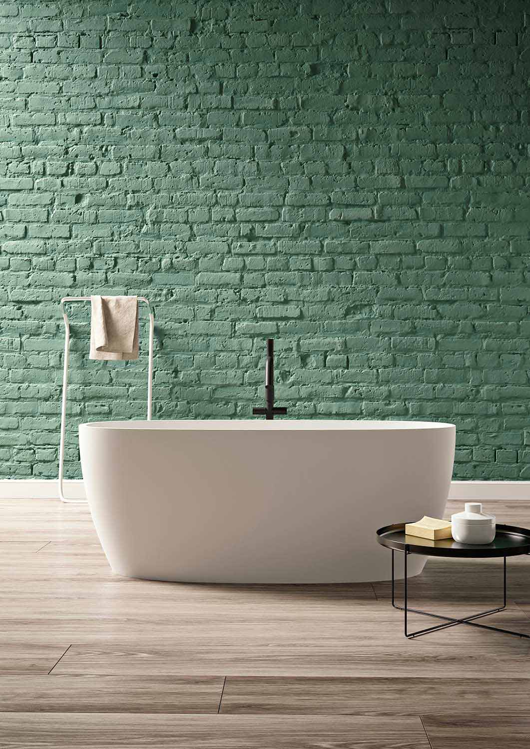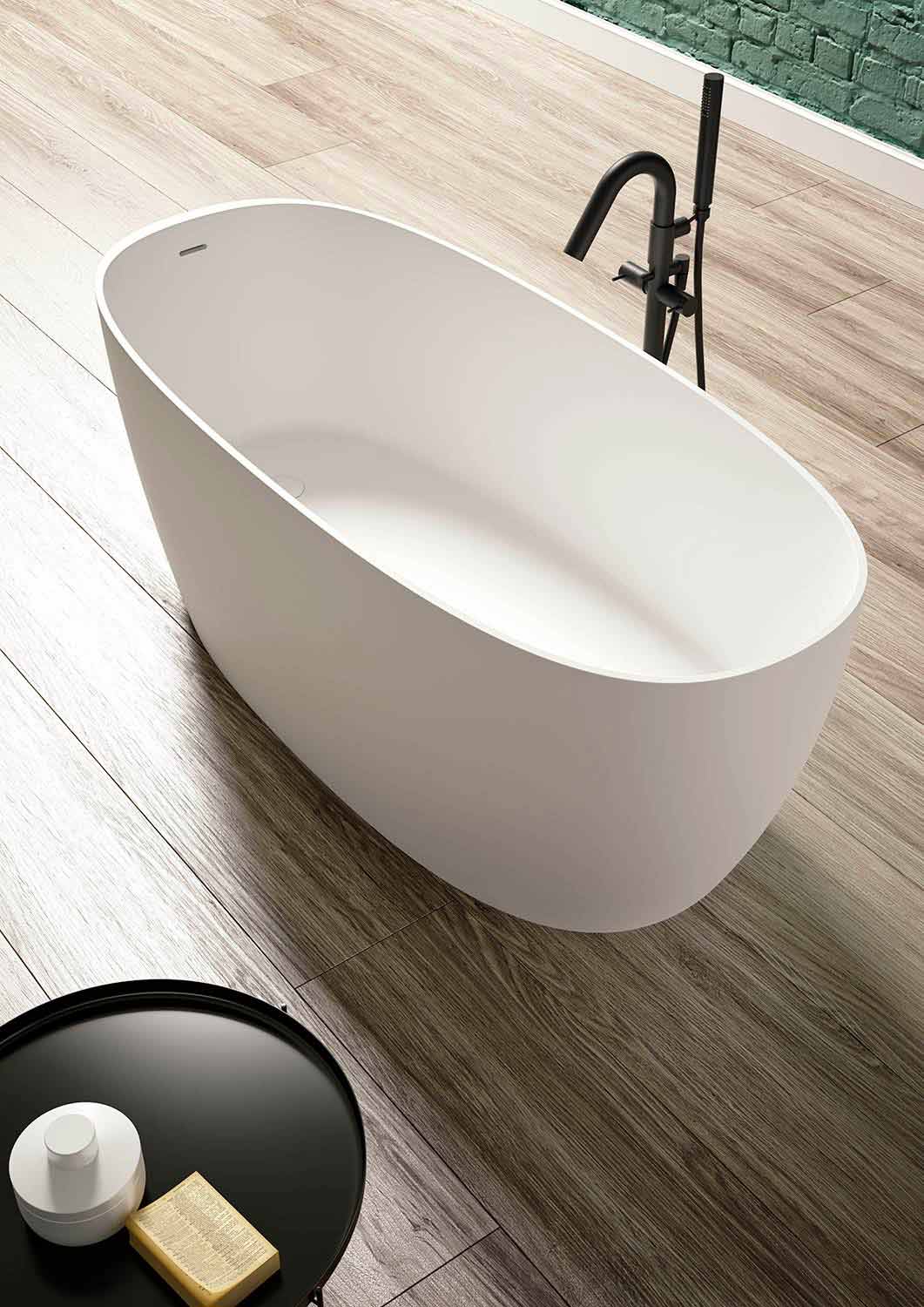 blank eller matt finish . Mångsidig, formbar, oföränderlig över tid. Dessa funktioner gör det här materialet perfekt för badrummet, motståndskraftigt och elegant samtidigt. Tolkas ut i produkter med sin attraktiva estetik som kan tillfredsställa även de mest krävande kunderna.