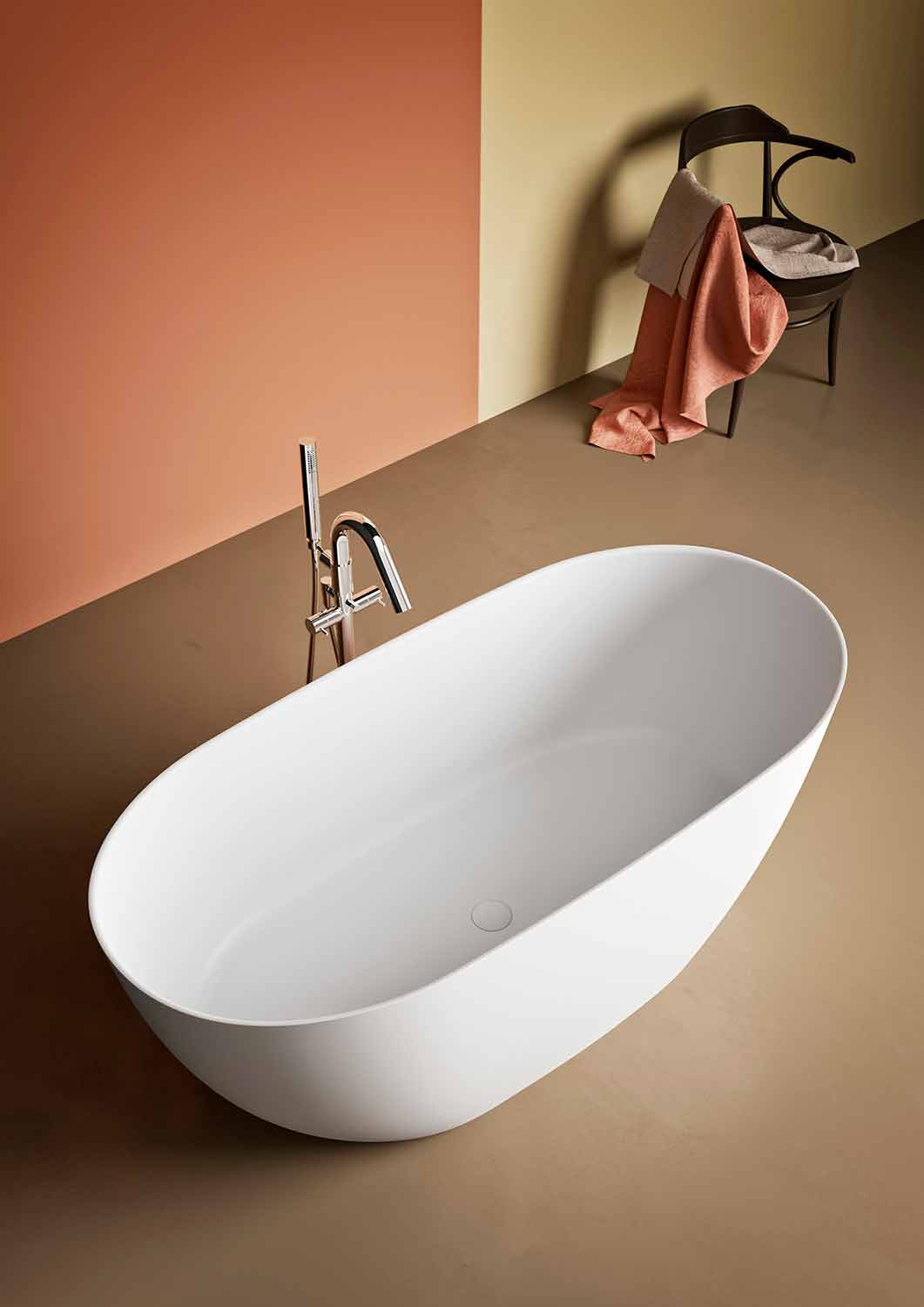 erbjuder designen ett obegränsat utbud av tekniska och estetiska möjligheter . Hans silkeslen och varma beröring i kombination med hans mineralaspekt och hans indikation på ljusreflektion gör det till ett material som kan omvandla objekt till huvudpersonen i badrummet.
