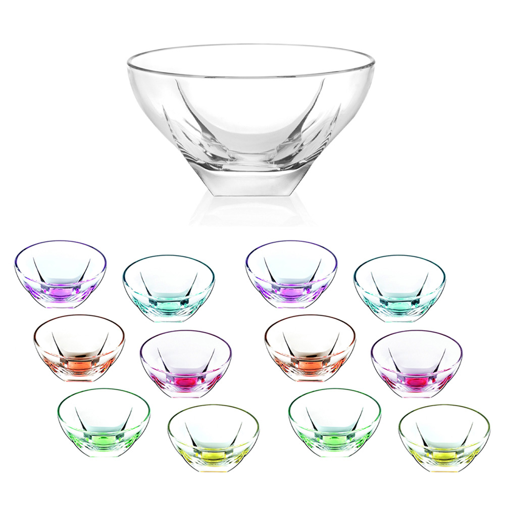 - 12 färgade eller transparenta skålar: diameter 13,5 xh 7,1 cm