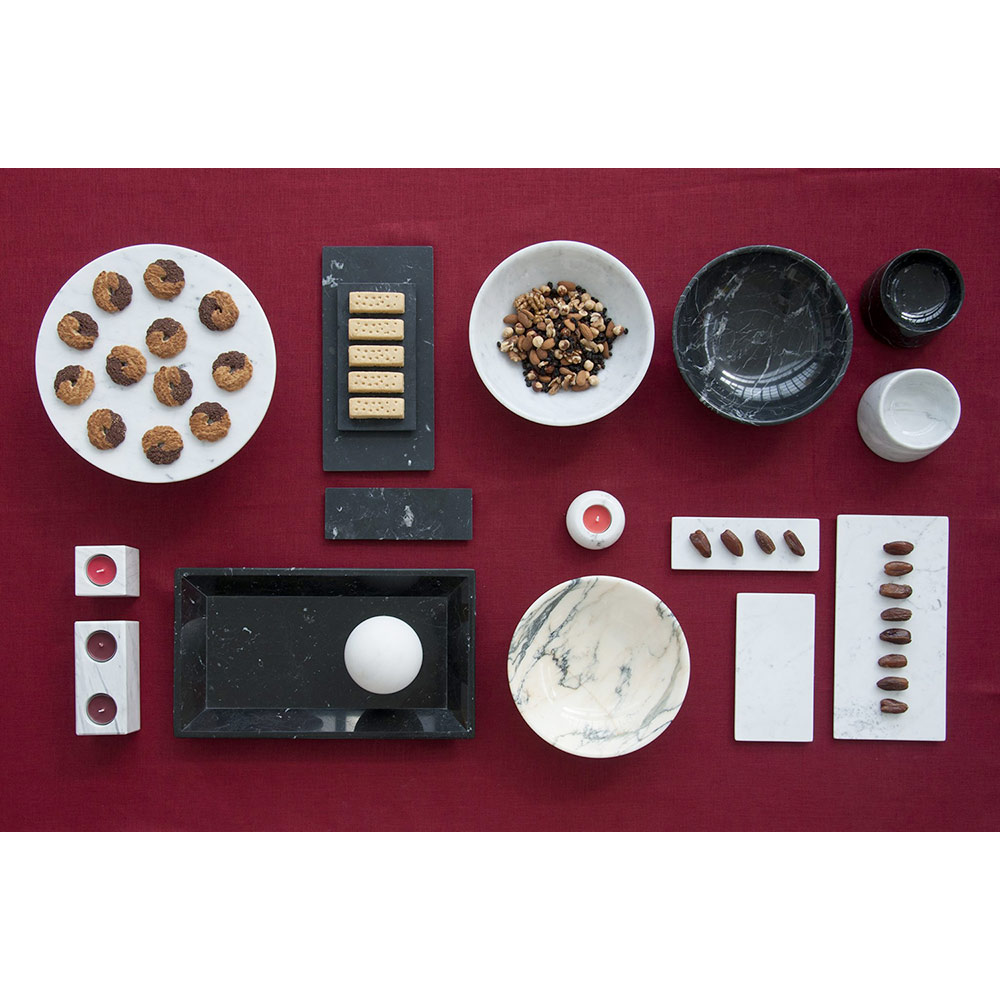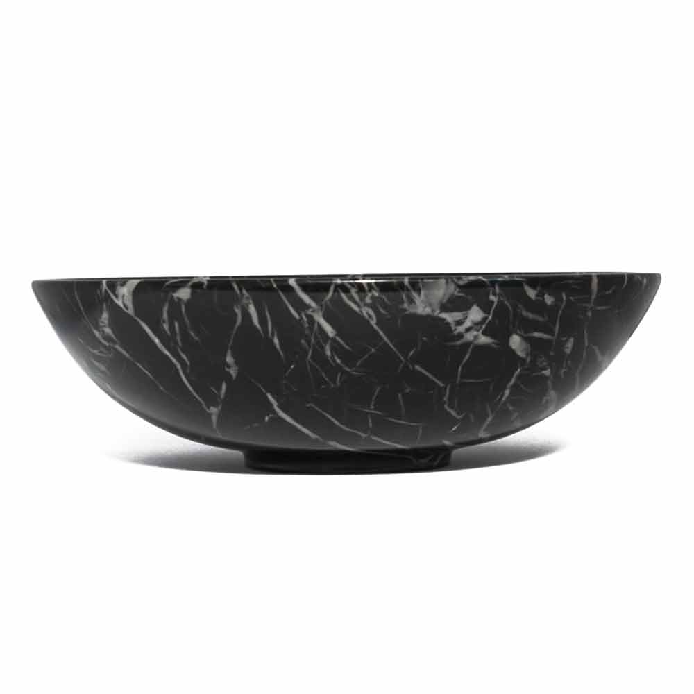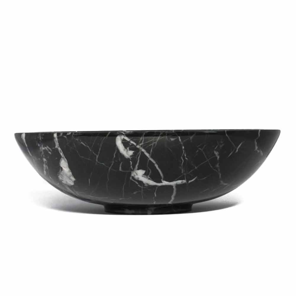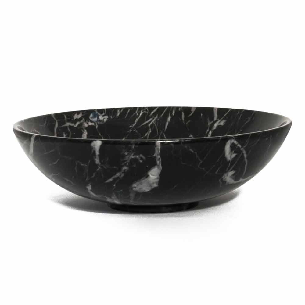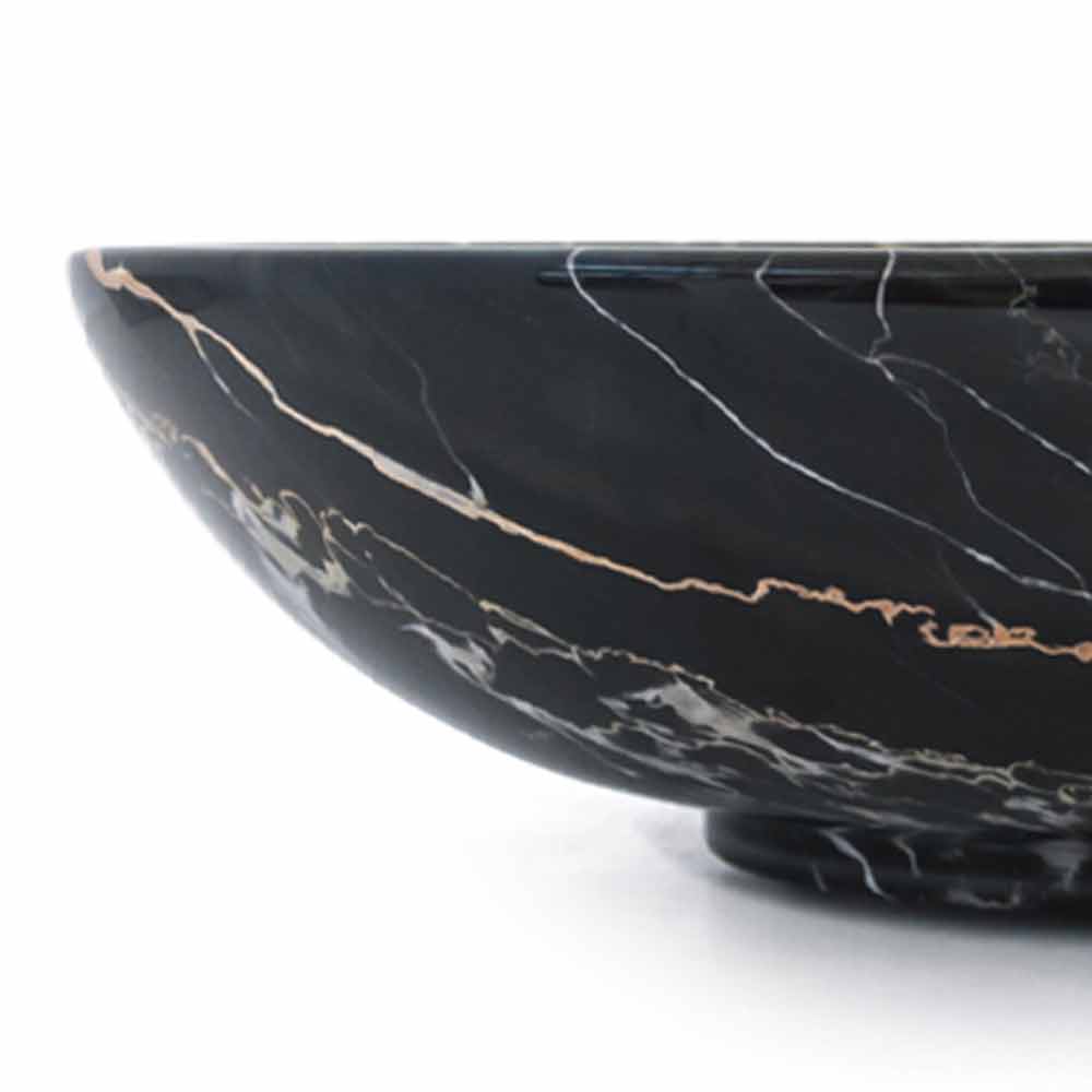 Rund design fruktskål i Portoro, Paonazzo eller Marquinia marmor Tillverkad i Italien.
