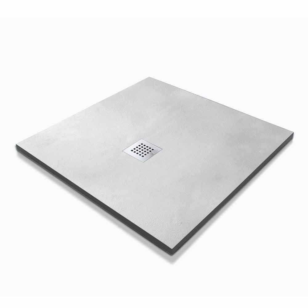 Modernt fyrkantigt duschkar i harts med betongeffektfinish.