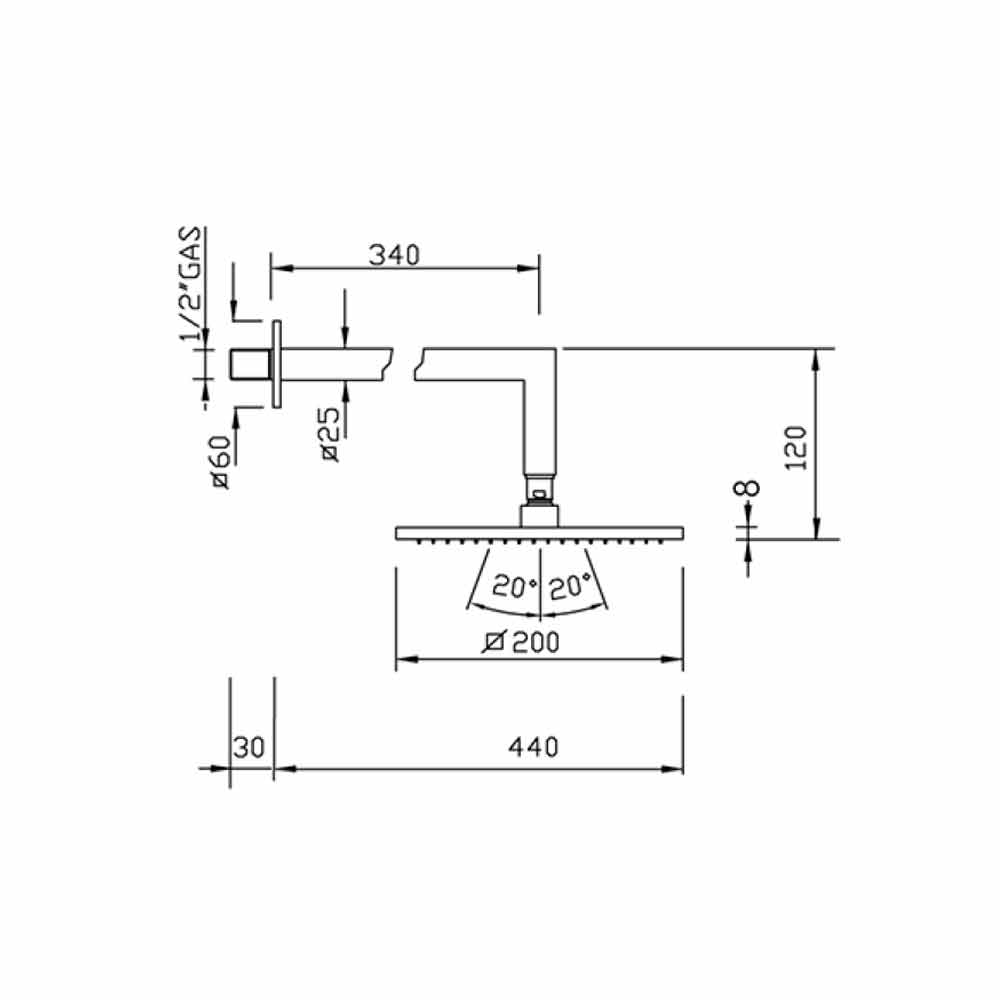 - fyrkantigt vägghängt duschhuvud i anti-kalkstensstål;