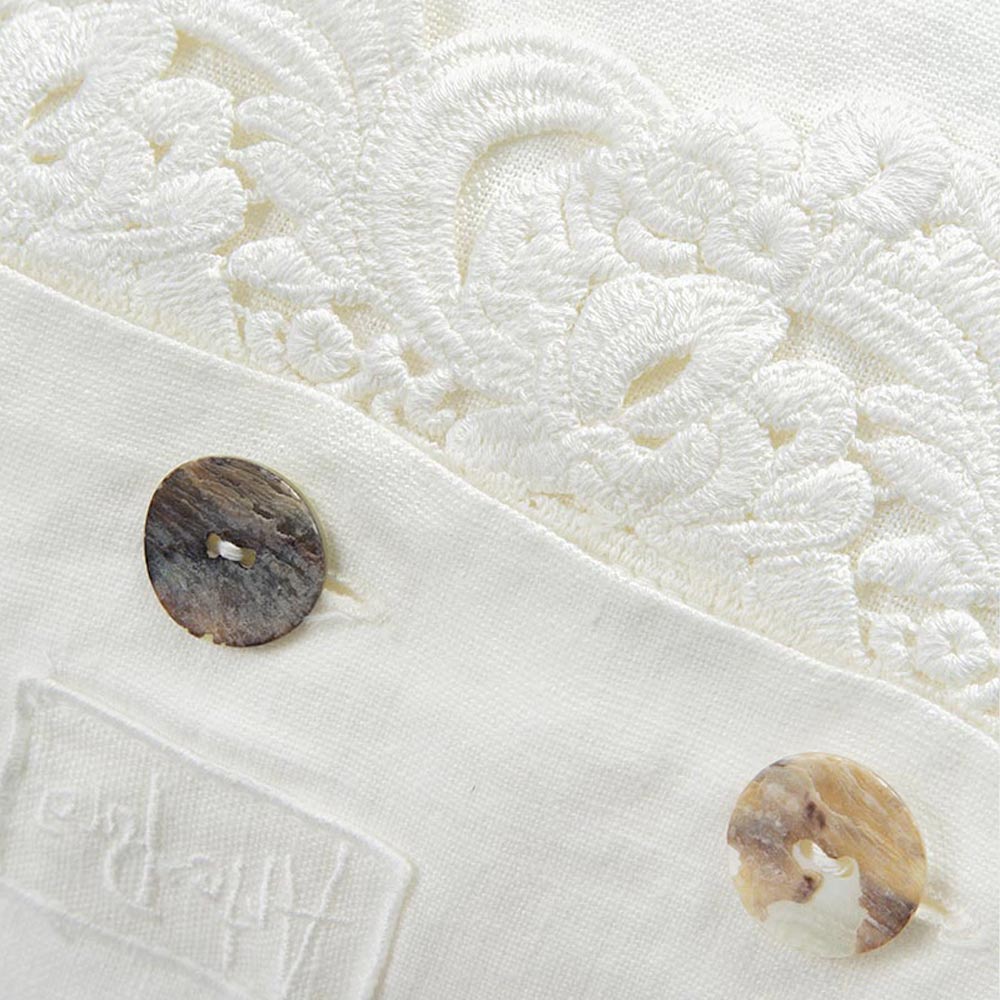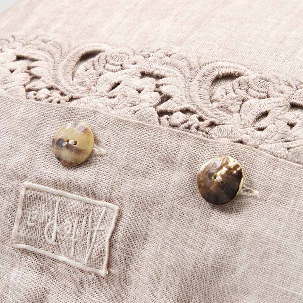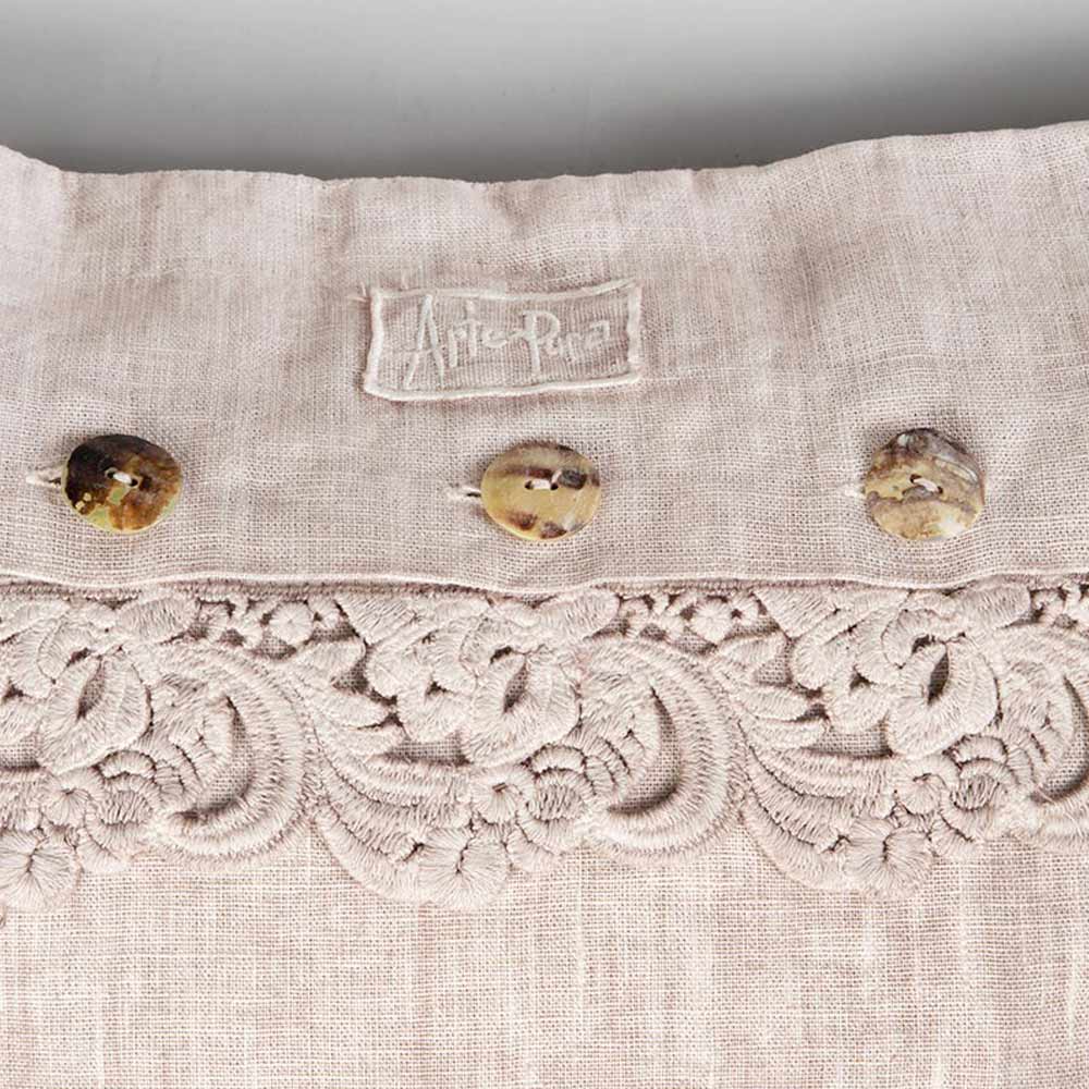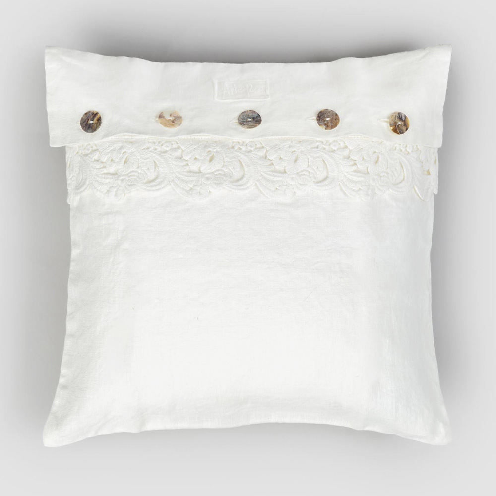 Fyrkantigt örngott i rent linne med harmonispets och knappar med lock, 2 färger tillverkade i Italien.
