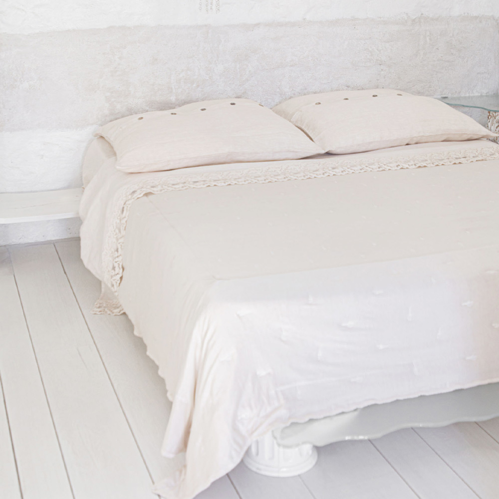 högkvalitativt linne och mjukt vid beröring tack vare speciella behandlingar som förstärker dess naturliga utseende. Det är ett perfekt tyg för sängen eftersom det är
