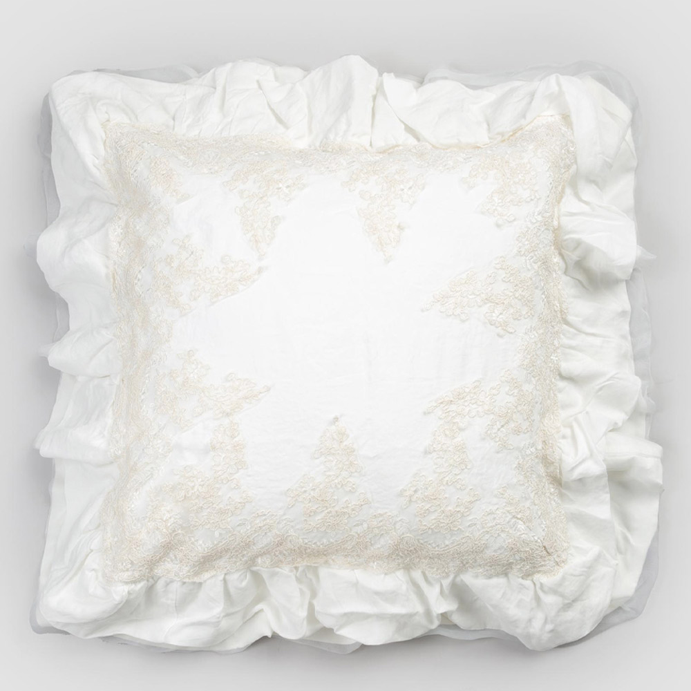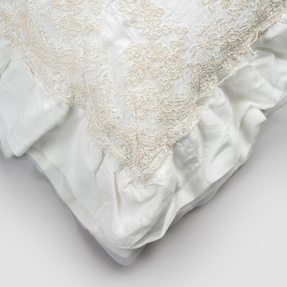 Traditionens värde förenar den moderna livsstilen med denna naturliga vita linned örngott med elegant spets på kanterna och flounces, för dekorativa kuddar med fyrkantig design.