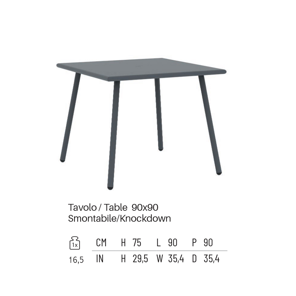 Dess harmoniska och balanserade proportioner gör det till ett perfekt inredningstillbehör för både inomhus- och utomhusmiljöer . Bordets mångsidighet ligger just i dess galvaniseringsprocess som ger det skydd mot atmosfäriska faktorer och gör det motståndskraftigt mot slitage. Hållbar produktion kommer från återvunna material vars mekaniska egenskaper inte försämras.