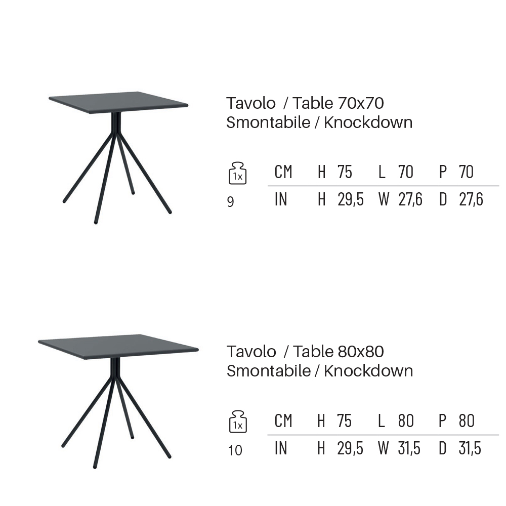 Fyrkantigt trädgårdsbord med galvaniserad stålkonstruktion 100 % tillverkat i Italien
