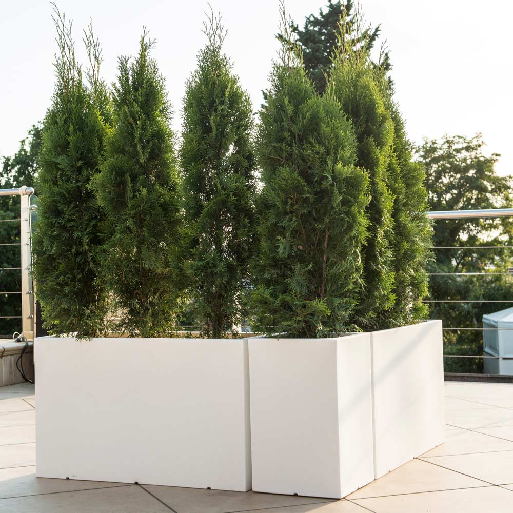 Vas eller avdelare för trädgårdar , terrasser och utomhusmiljöer. Den är robust och rymlig och är idealisk för att dela upp utrymmen med elegans. Tillverkad av polyeten, är den