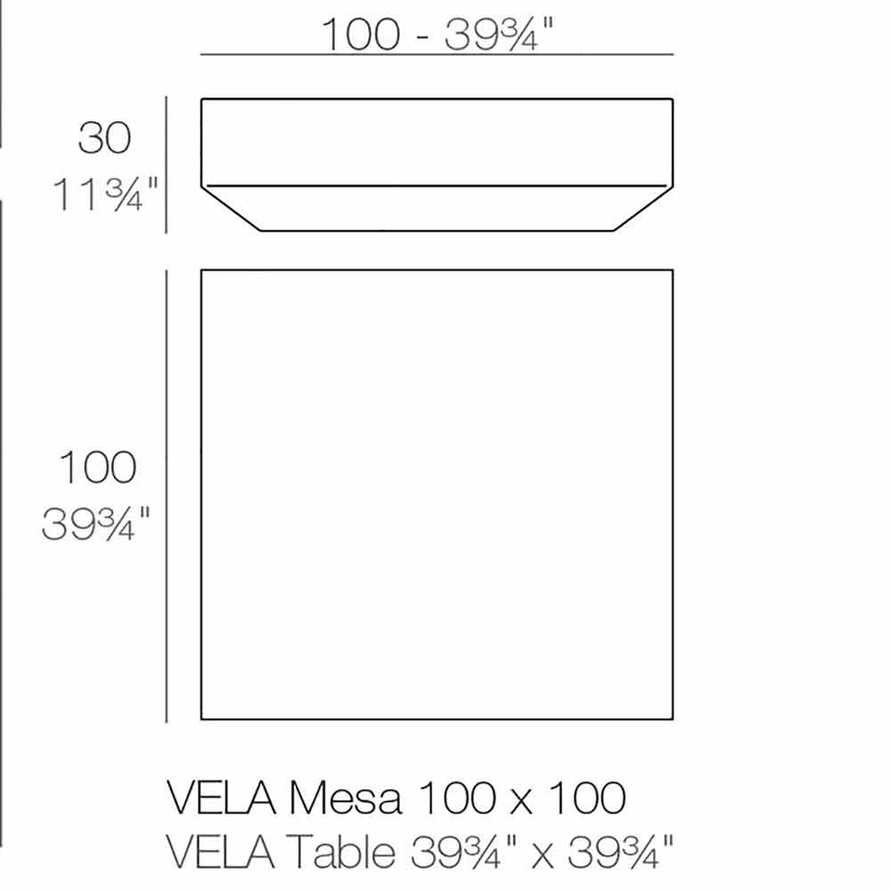 Vela-samlingen designades av formgivaren Ramòn Esteve. Den här stora samlingen av utemöbler syftar till att erbjuda komfort och kvalitet på inredning utan att förlora sina ursprungliga egenskaper. Vela är ett modulärt system med en elementär prismatisk geometri som baserar sin singularitet på balansen i dess proportioner.